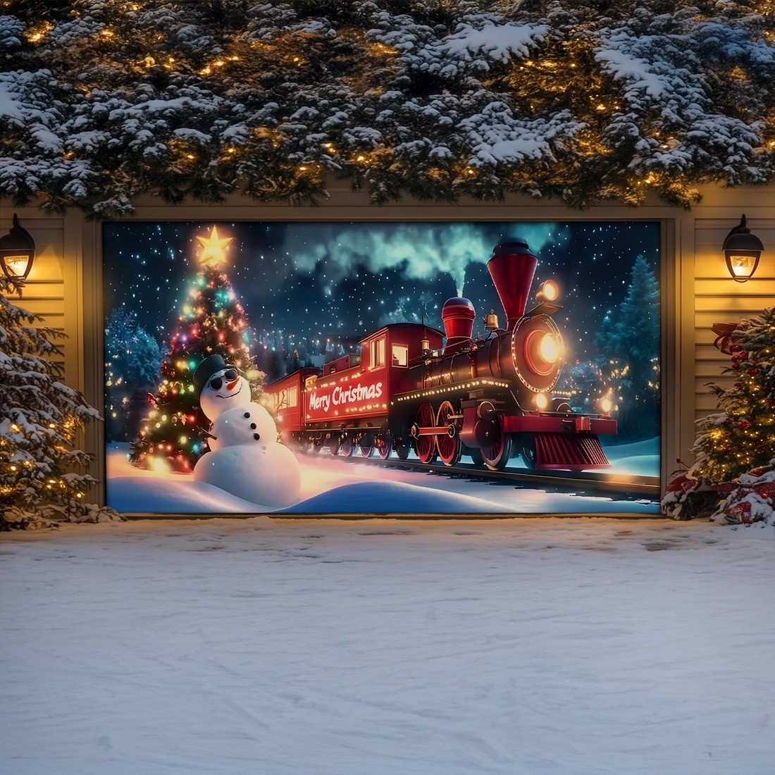 Rushgleam Merry Christmas Garage Door Cover Snowman And Train Of Lights Decorations Xmas Gifts For Dad