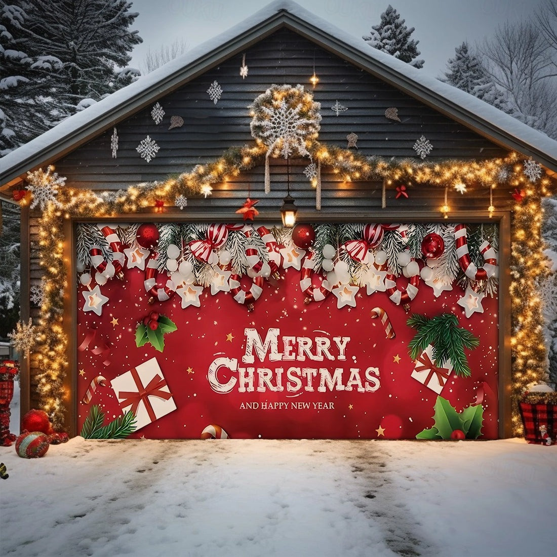 Rushgleam Merry Christmas Garage Door Cover Stars Candy Cane And Gifts Happy New Year Gara Decorations