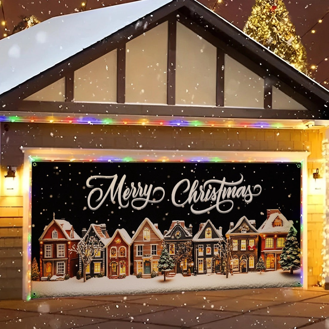 Rushgleam Merry Christmas Garage Door Cover Winter Holiday Townscape House Decorations Gifts For Him