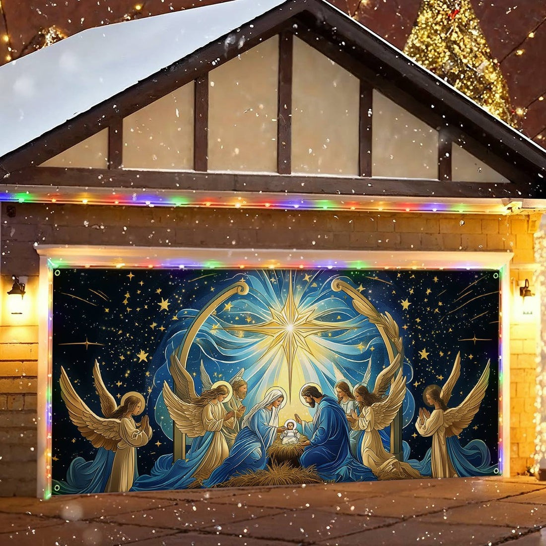 Rushgleam Nativity Holy Night Christmas Garage Door Cover Sacred Moment Religious Decoration Gifts