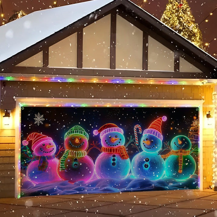 Rushgleam Neon Snowman Family Christmas Garage Door Cover Colorful Light Glow Outside Decor Gifts