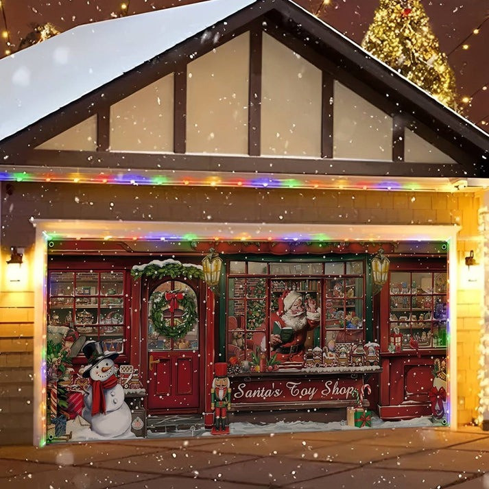 Rushgleam Santa’s Toy Shop Christmas Garage Door Cover Festive Christmas Outdoor Home Gifts