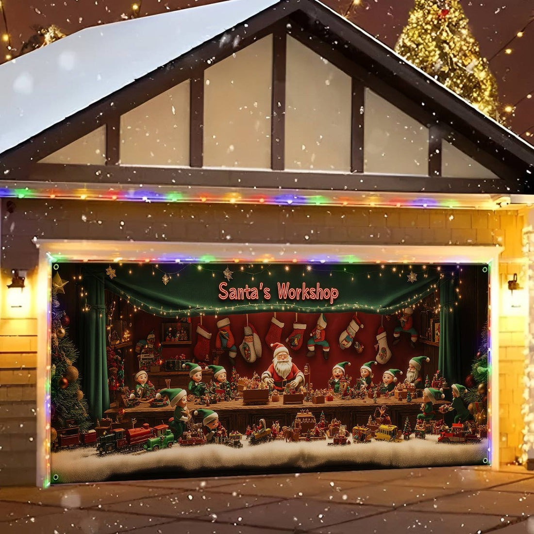 Rushgleam Santa’s Workshop Christmas Garage Door Cover Cute Home Decoration Gifts For Christmas