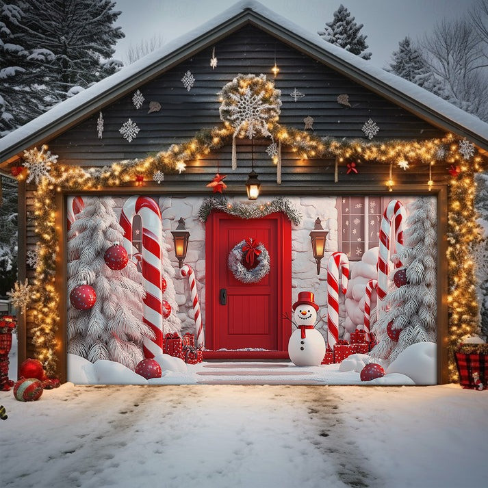 Rushgleam Snowman Candy Cane Christmas Garage Door Cover Festive Christmas Outdoor Home Decor Gifts