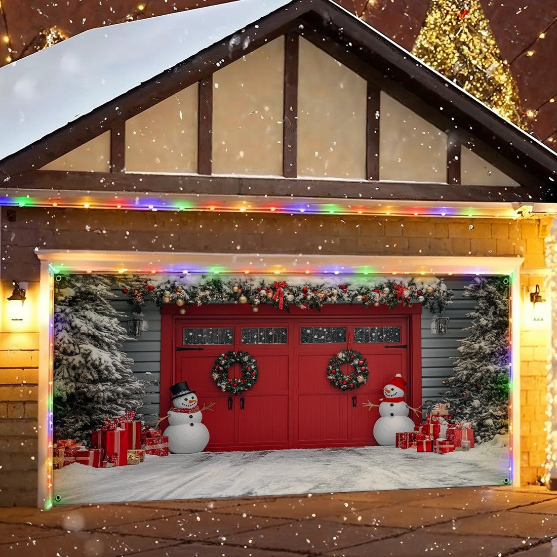 Rushgleam Snowman Frosted Cheer Garage Door Cover Festive Red Door Gara Decorations Xmas Presents