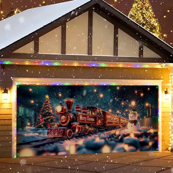 Rushgleam Snowman Merry Christmas Garage Door Cover Express Train Xmas Festival House Decor Gifts