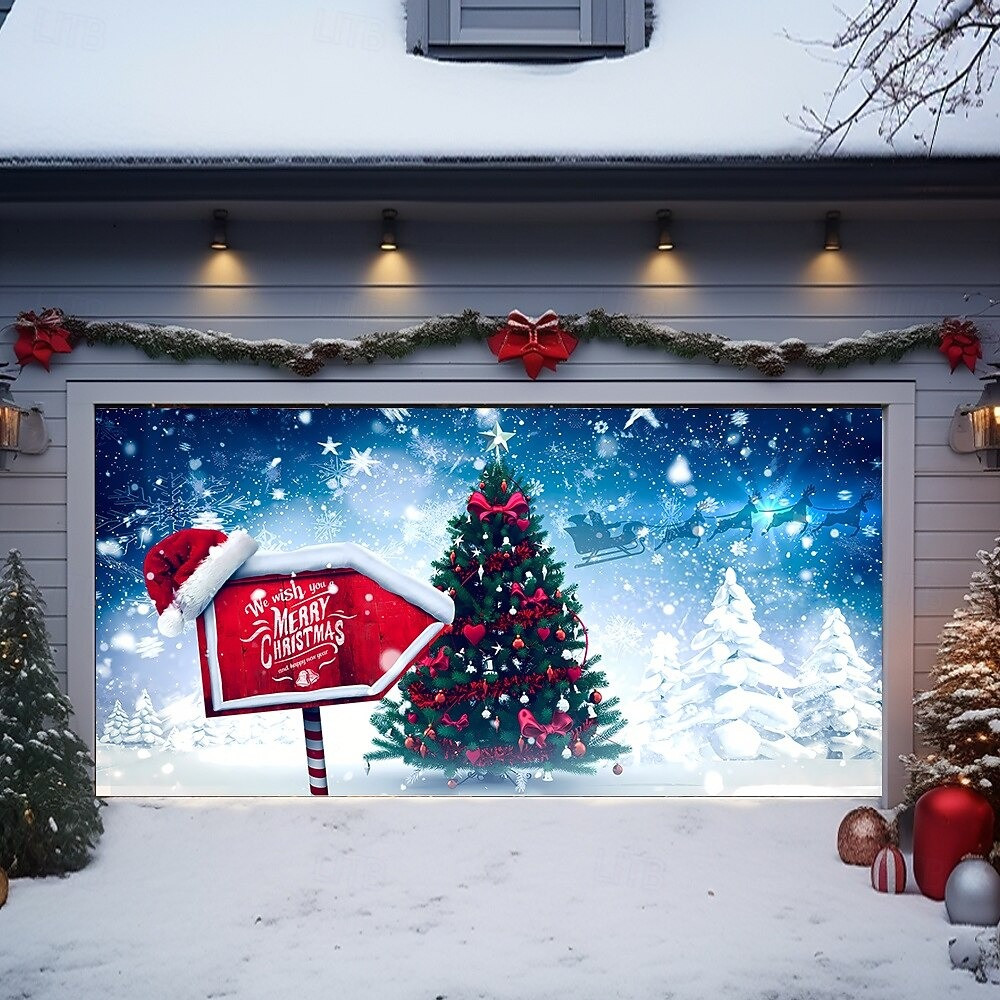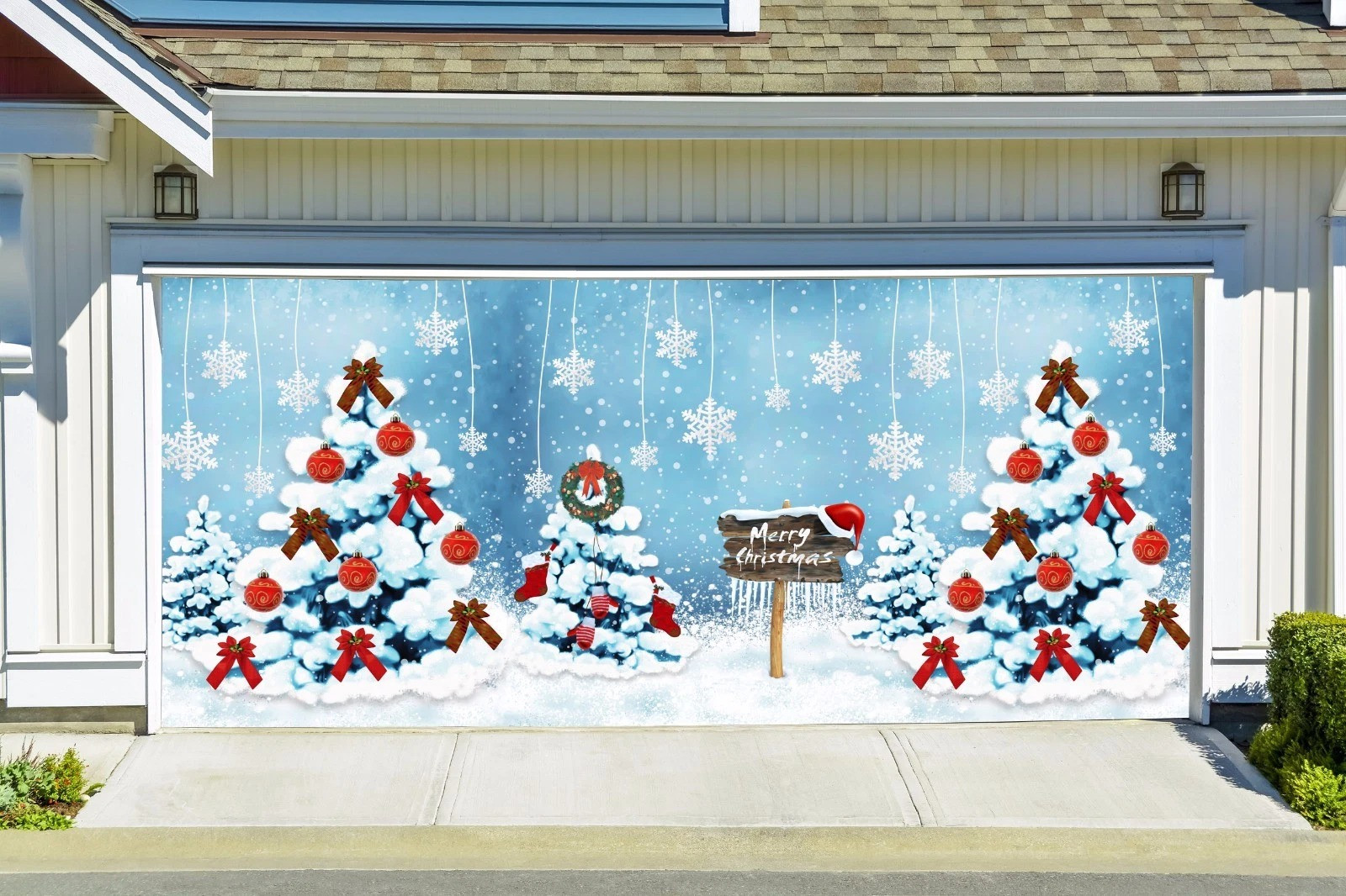 Snow Xmas Tree Merry Christmas Garage Door Cover Winter Garage Cover Decor Snow Gifts