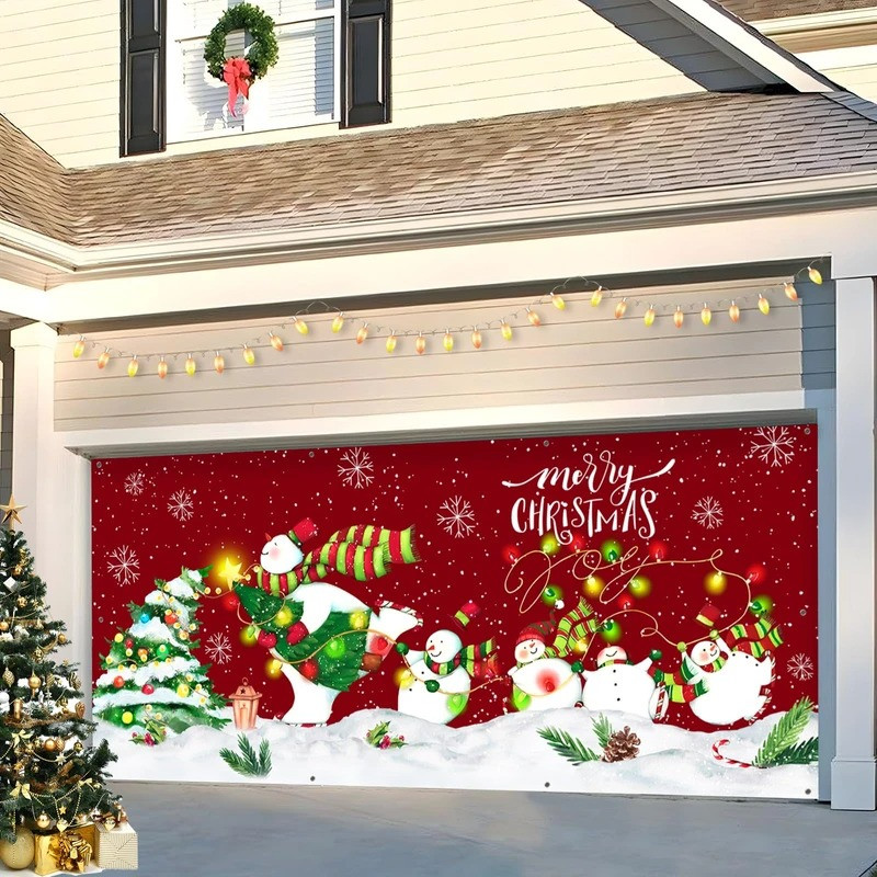 We Wish You Merry Christmas Garage Door Cover Festive Garage Backdrop Xmas Themed Gifts