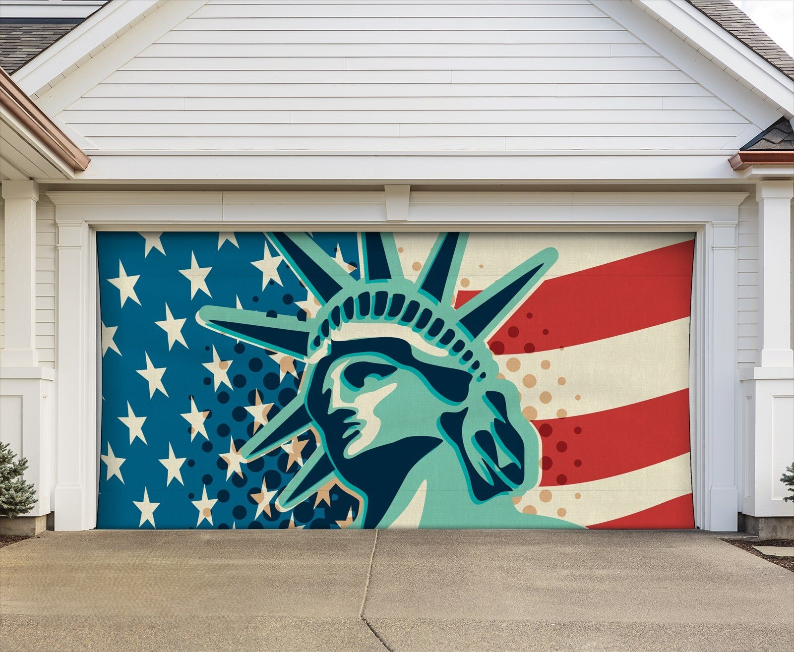 Statue Of Liberty Garage Door Cover Patriotic Outdoor Decoration Gift For Veteran