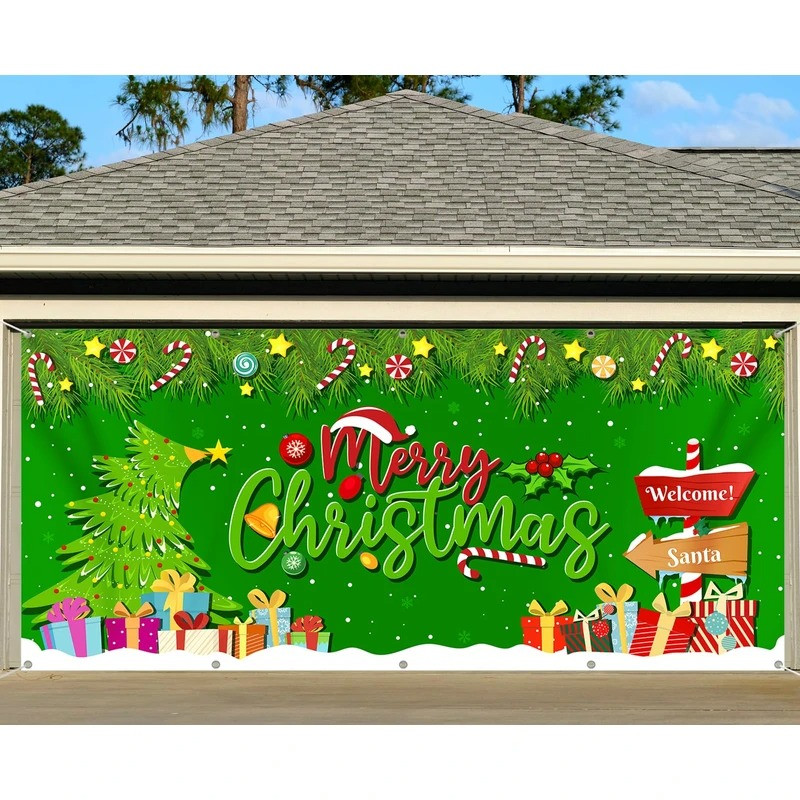 Welcome Santa Merry Christmas Garage Door Cover Festive Garage Banner Decor Xmas Gifts