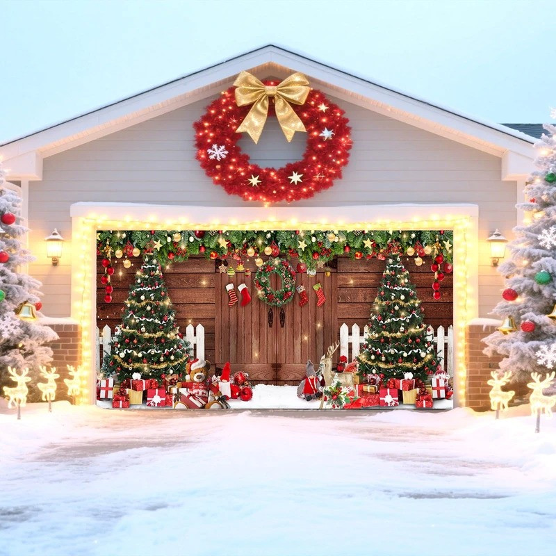 Festive Stable And Wreath Christmas Garage Door Cover Winter Outdoor Decor Xmas Gifts