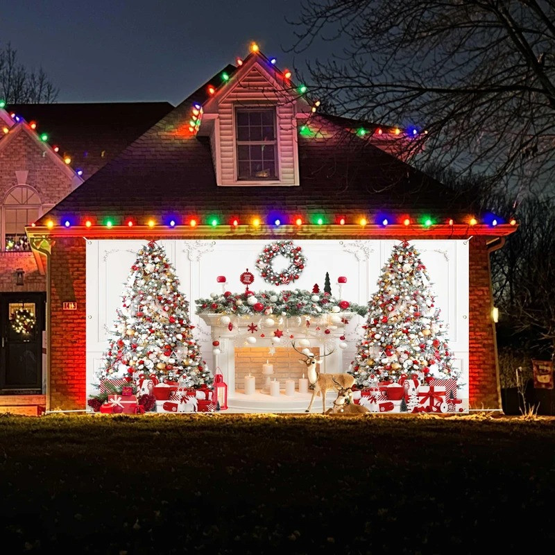 Fireplace Cozy Scene Christmas Garage Door Cover Xmas Door Banner Decor Family Gifts