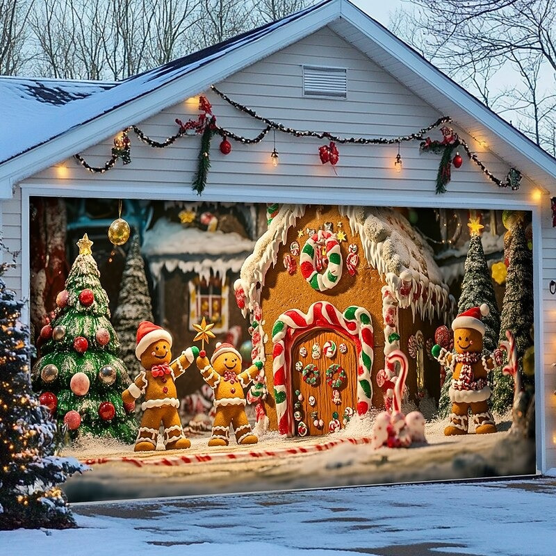 Gingerbread House Christmas Garage Door Cover Xmas Outdoor Decor Gingerbread Themed Gifts