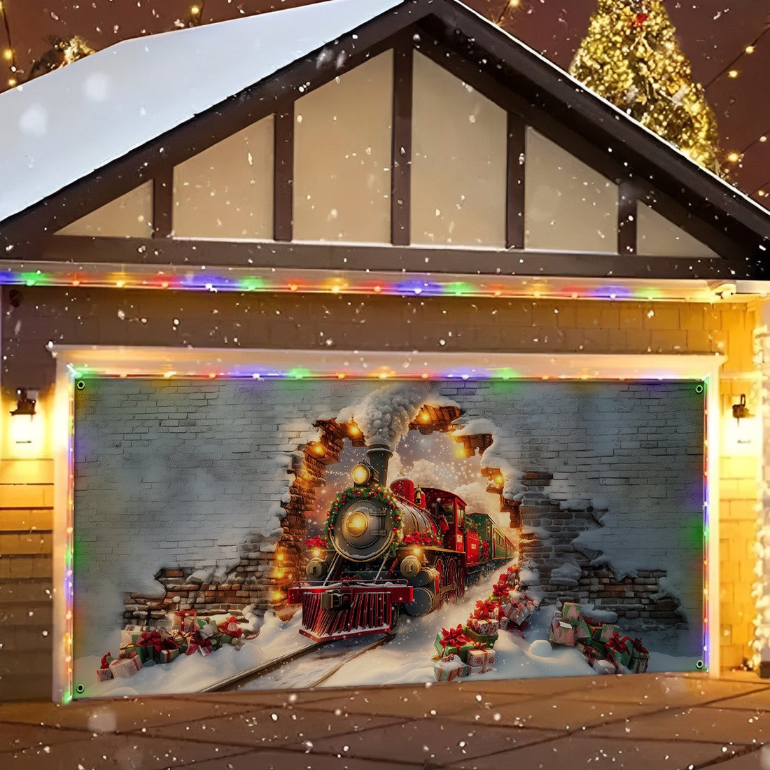 Rushgleam Christmas Train Garage Door Cover Wall Breakthrough Holiday Outdoor Decoration