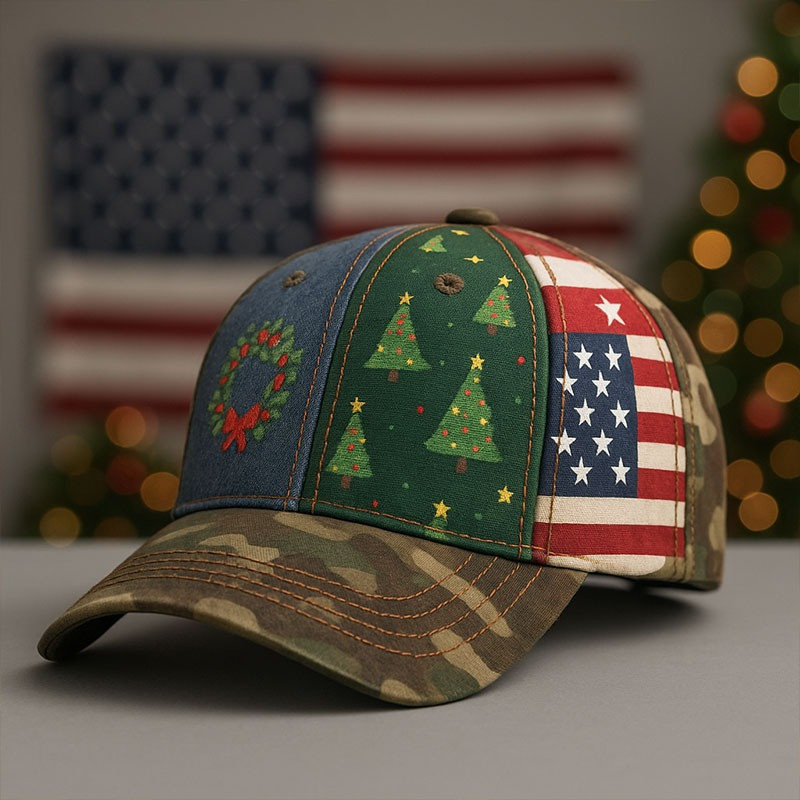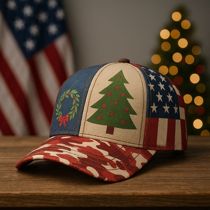 Pine Tree And Wreath Patriotic Christmas Hat American Flag Holiday Military Cap Xmas Gifts