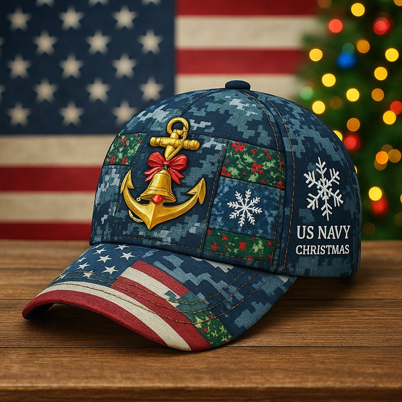 U.S. Navy Christmas Hat Anchor And Snowflake Patch Cap Festive Military Xmas Holiday Gifts