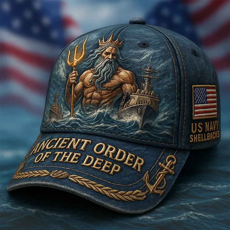 US Navy Shellbacks Hat Ancient Order Of The Deep USA Flag Military Cap Gifts For Patriots