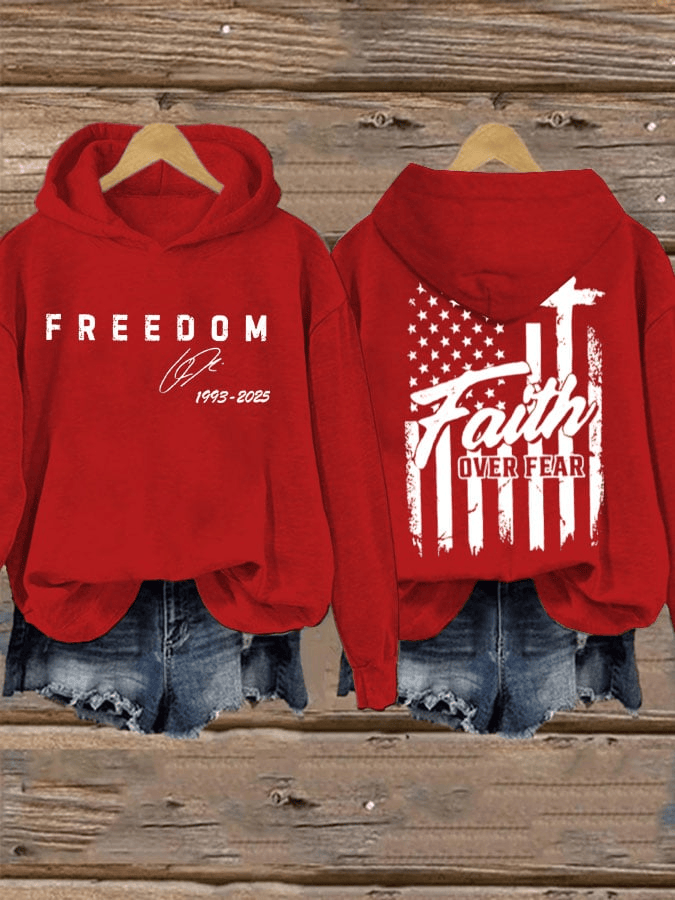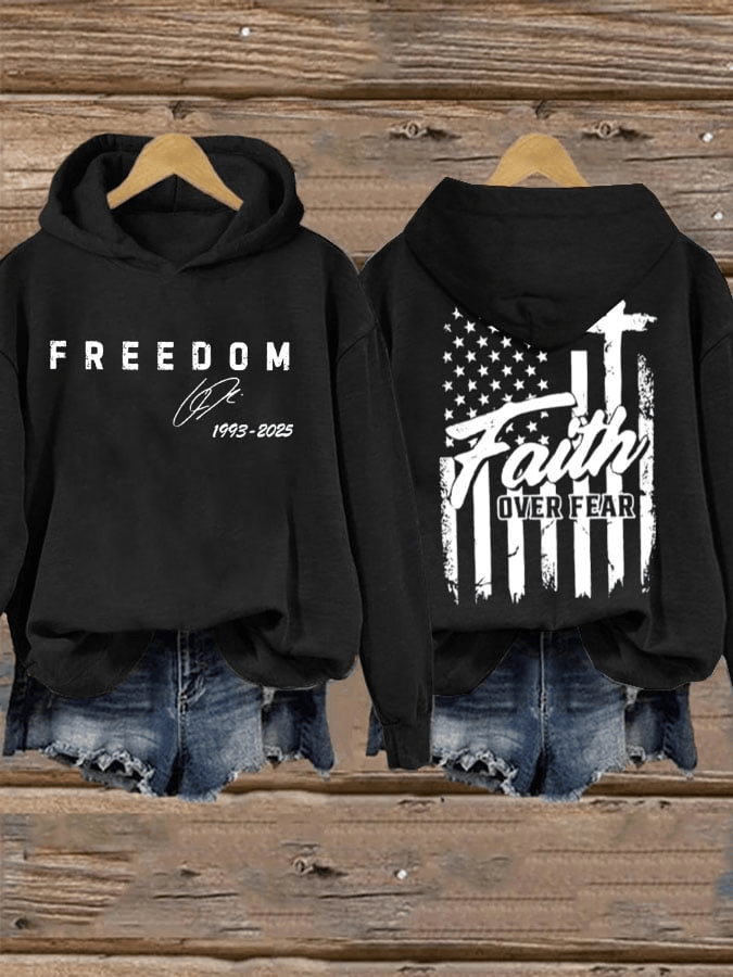 $39.99 – $44.99Price range: $39.99 through $44.99Freedom Charlie Kirk Signature Hoodie Faith Over Fear Pullover Turning Point USA Merch Patriotic Gift for Wife