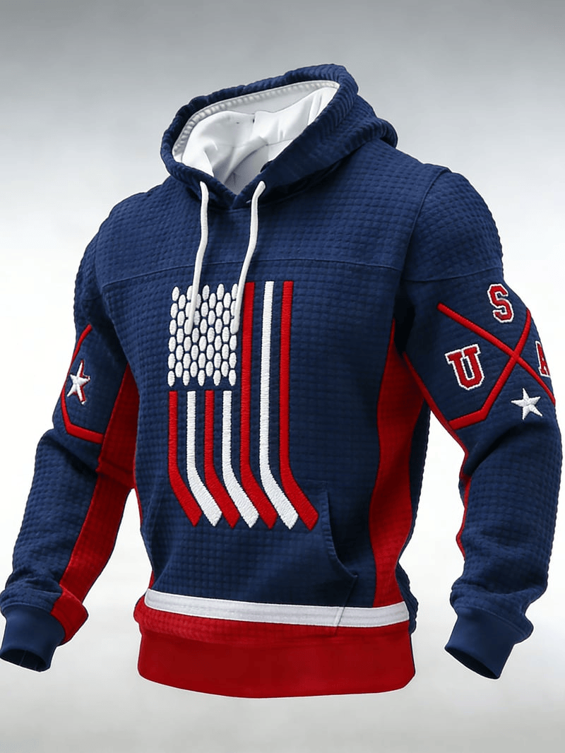 Men’s Team USA Hockey Sports Waffle Hoodie American Flag Print Pullover Gift for Hockey Fans