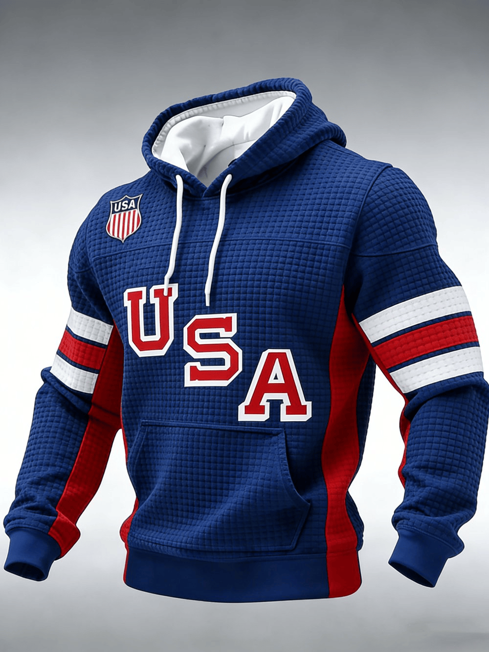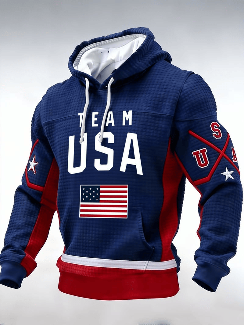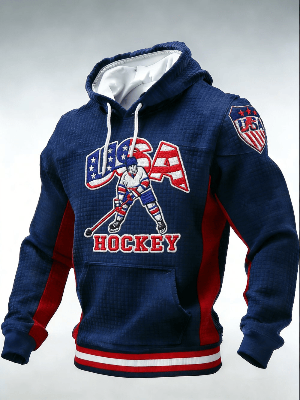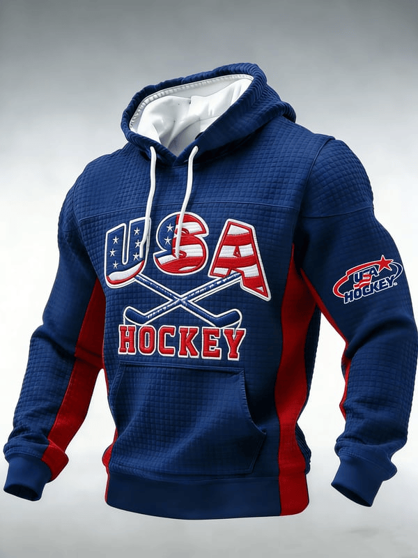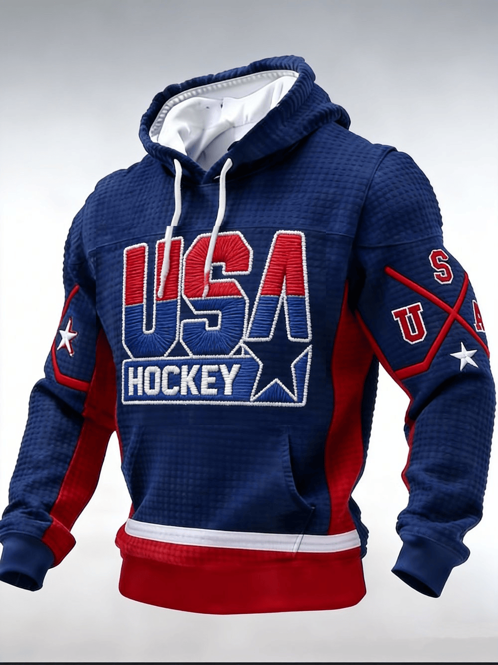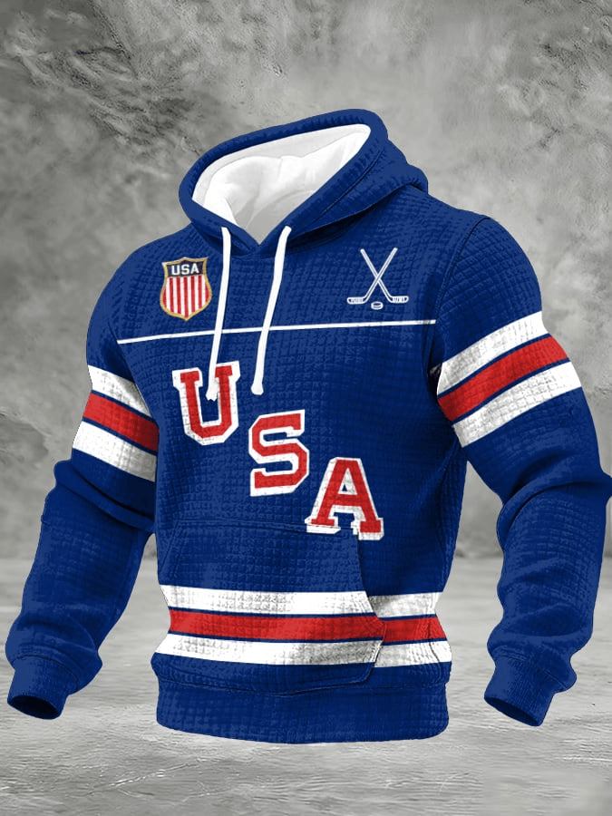 Men’s Team USA Hockey Print Waffle Hoodie Game Day Apparel Hockey Fan Gifts