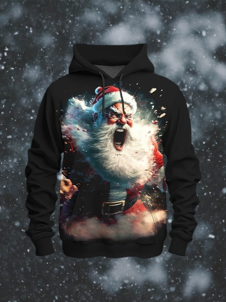 Raging Santa Claus Wearing Glass Christmas Hoodie Angry Santa Festival Outfit Gifts For Him