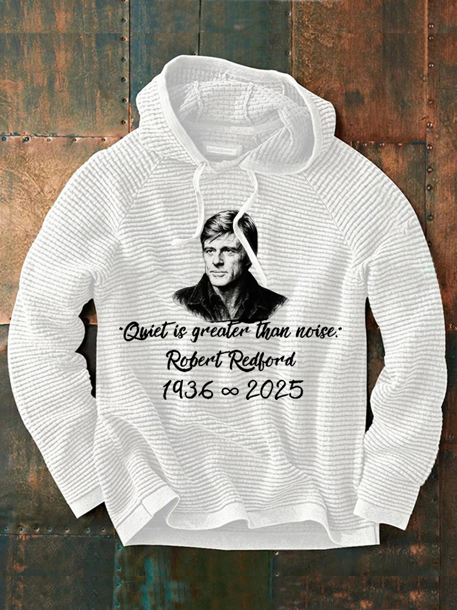 $44.99 – $49.99Price range: $44.99 through $49.99Robert Redford Hoodie Quiet Is Greater Than Noise Robert Redford 1936 2025 Memory Presents