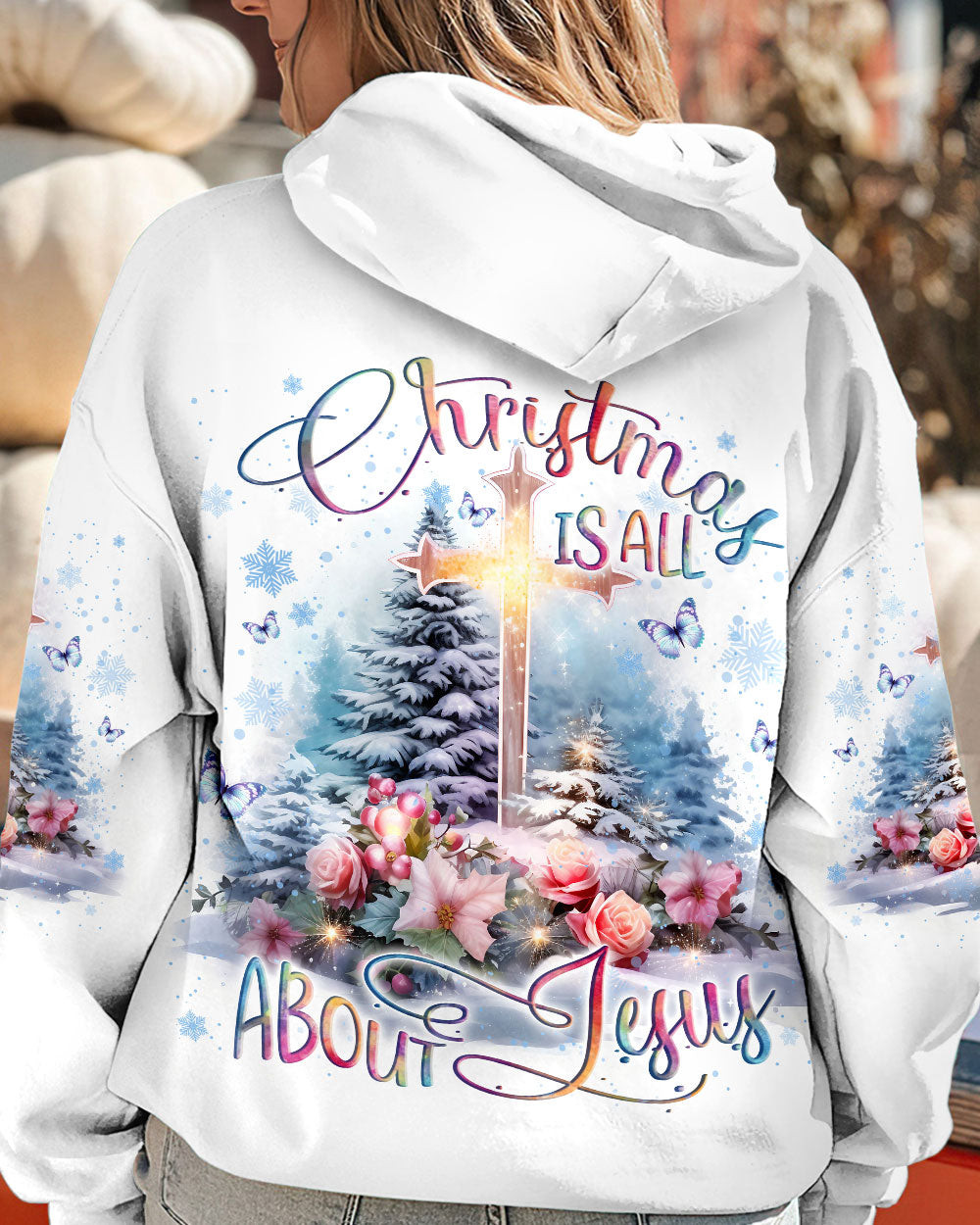 Rushgleam Christmas Is All About Jesus Christmas Hoodie Cozy Winter Xmas Apparel Jesus Based Gifts