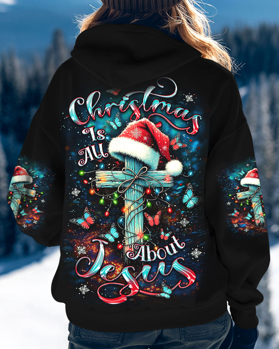 Rushgleam Christmas Is All About Jesus Christmas Hoodie Xmas Holiday Apparel Christian Gift Ideas
