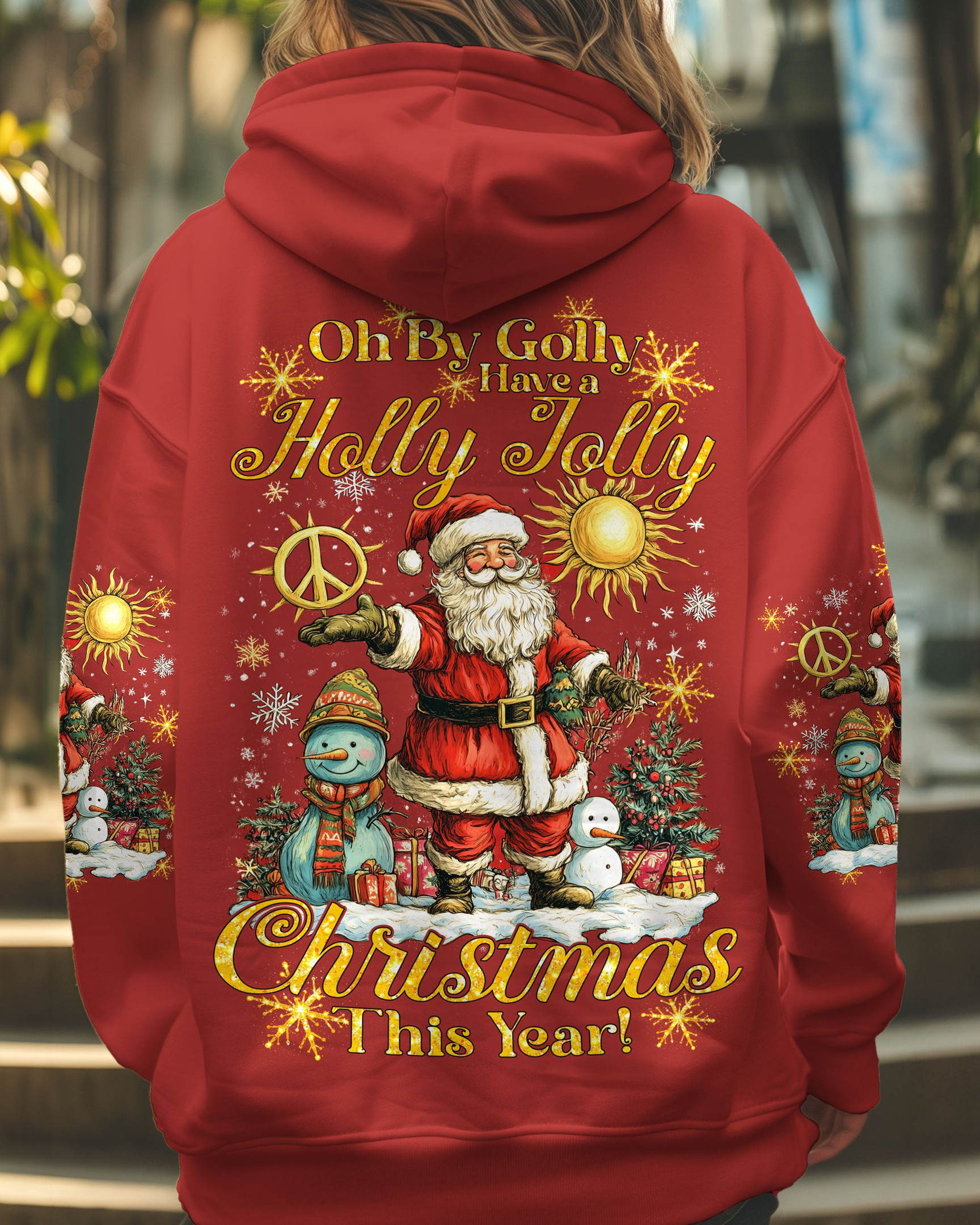 Rushgleam Christmas Santa And Snowman Hoodie Holly Jolly Christmas This Year Cute Merchandise Gifts