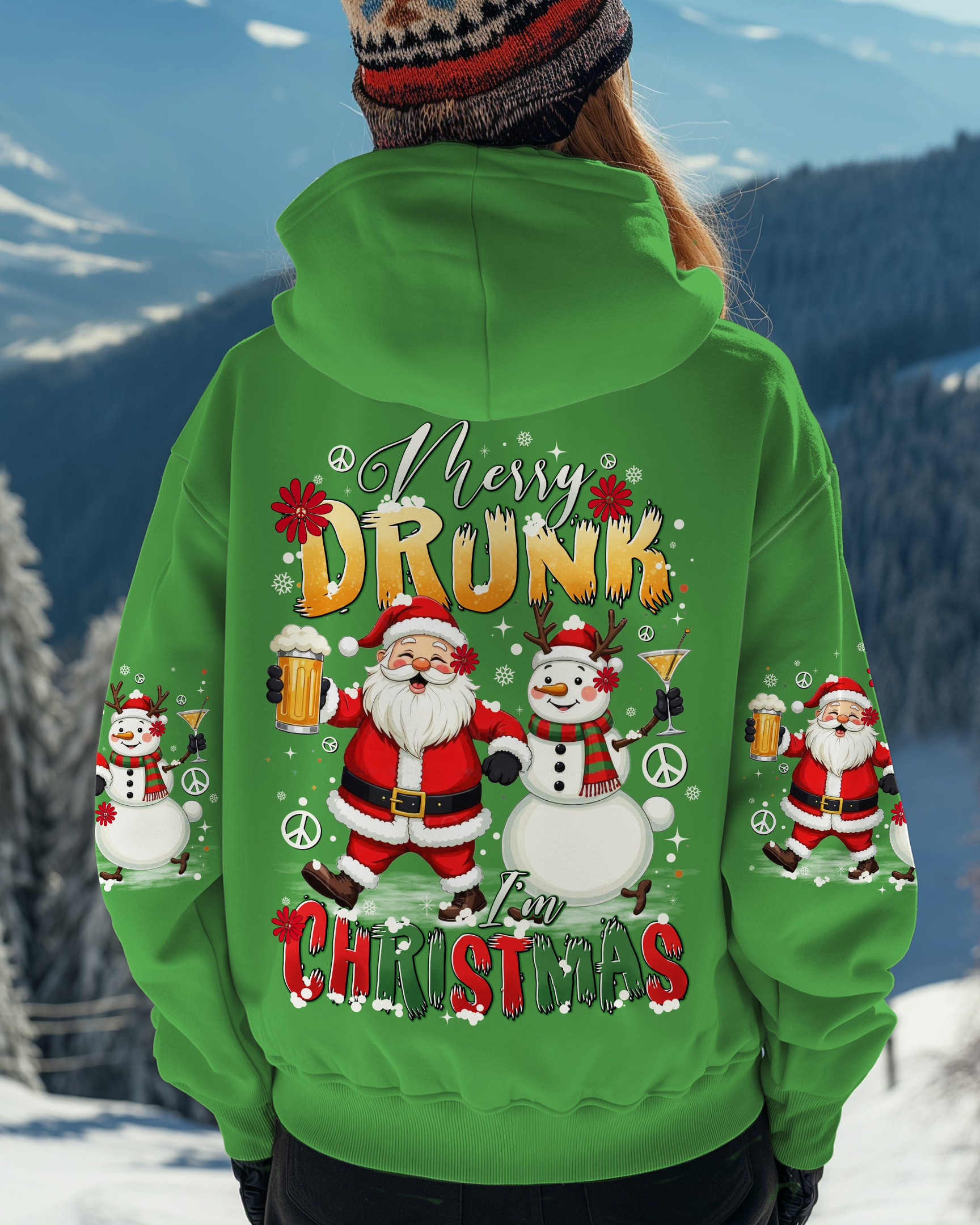 Rushgleam Christmas Santa And Snowman Hoodie Merry Drunk Xmas Funny Clothes Presents For Beer Lovers