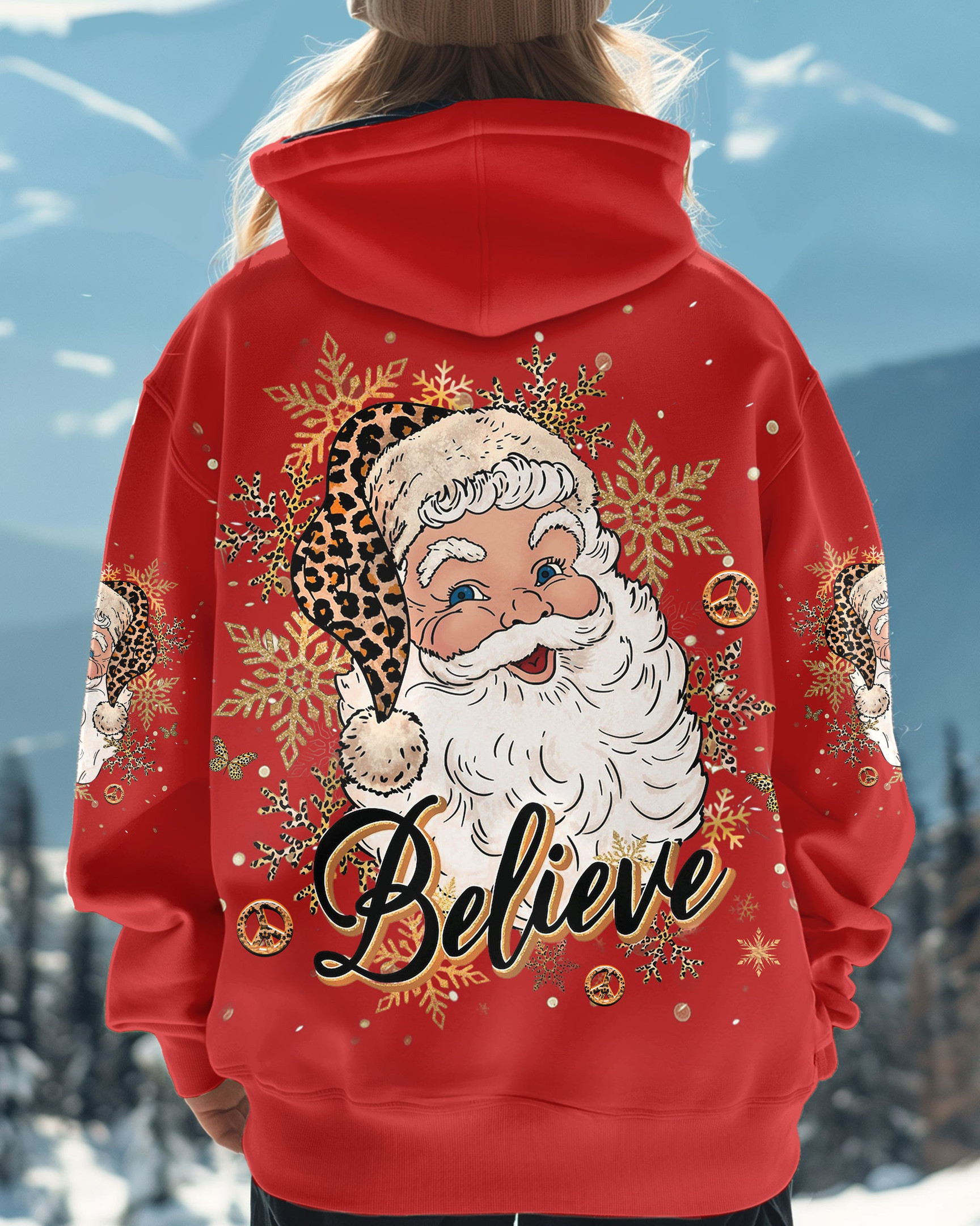 Rushgleam Christmas Santa Believe Hoodie Santa Themed Clothing Cute Xmas Gifts For Her