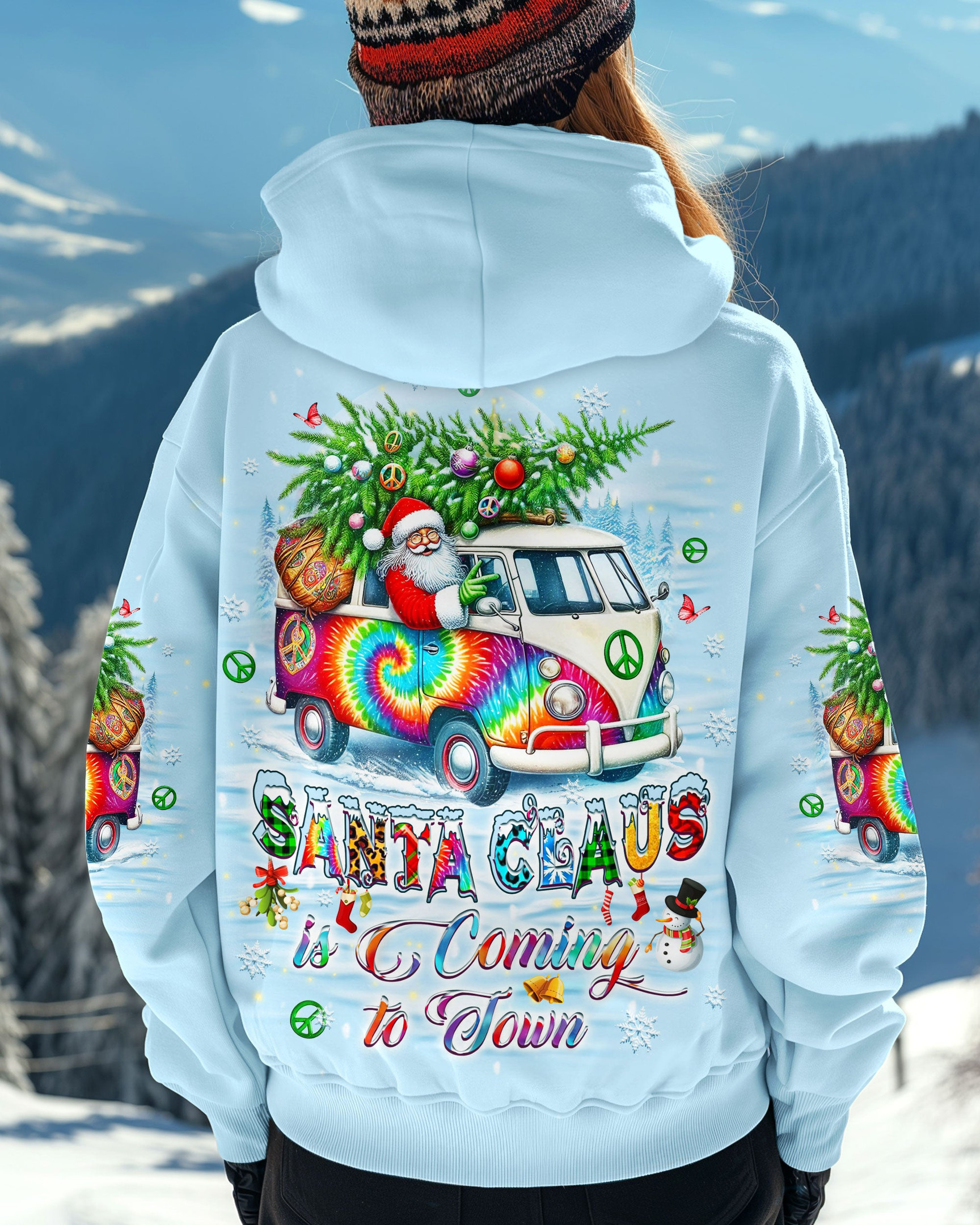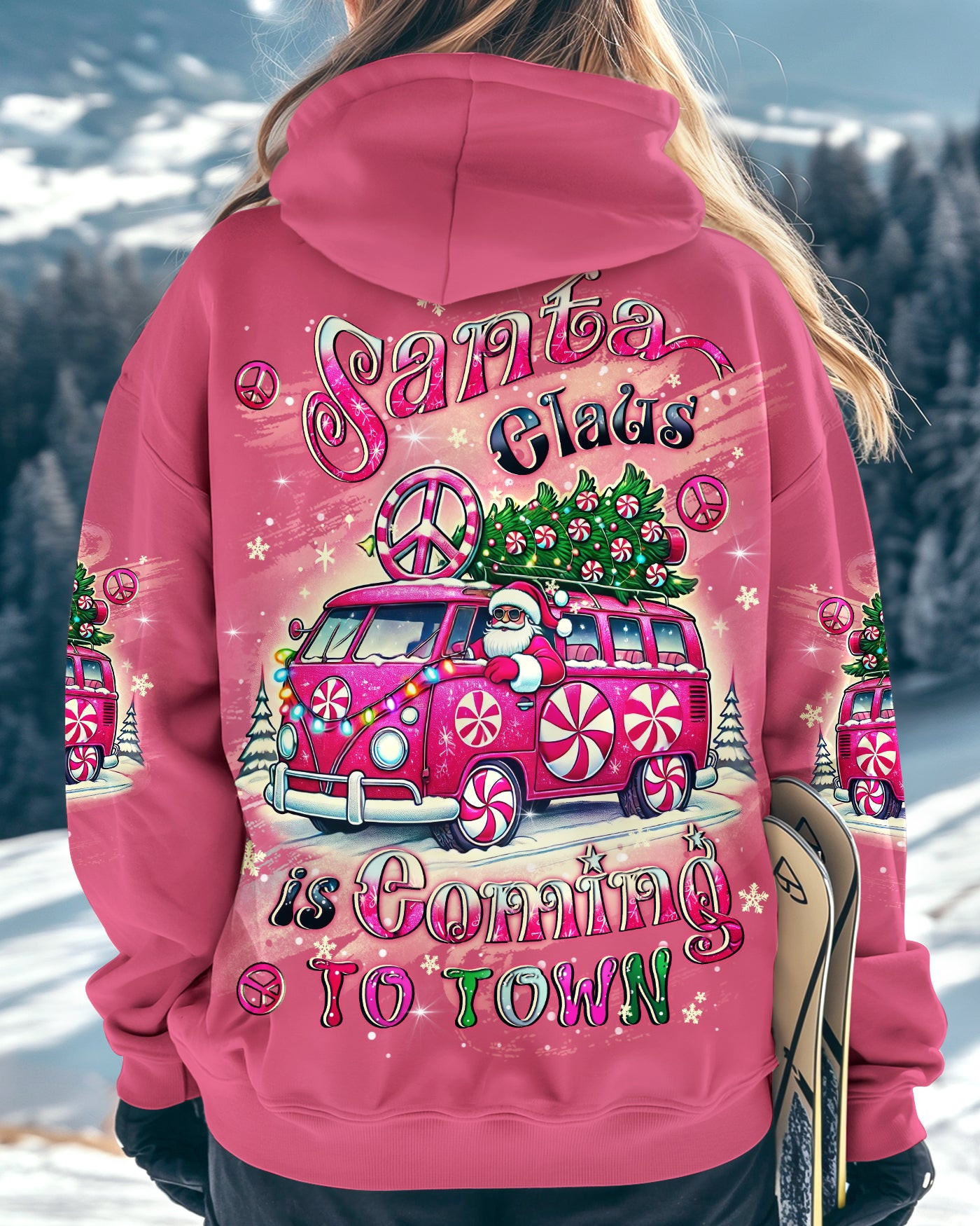 Rushgleam Christmas Santa Driving Hippie Bus Hoodie Santa Claus Is Coming Apparel Holiday Gifts