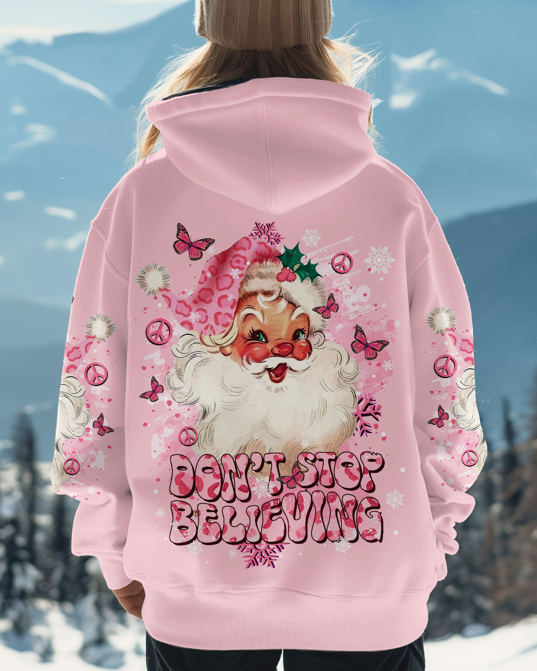 Rushgleam Christmas Santa Claus Hoodie Don’t Stop Believing Clothes Presents For Christmas