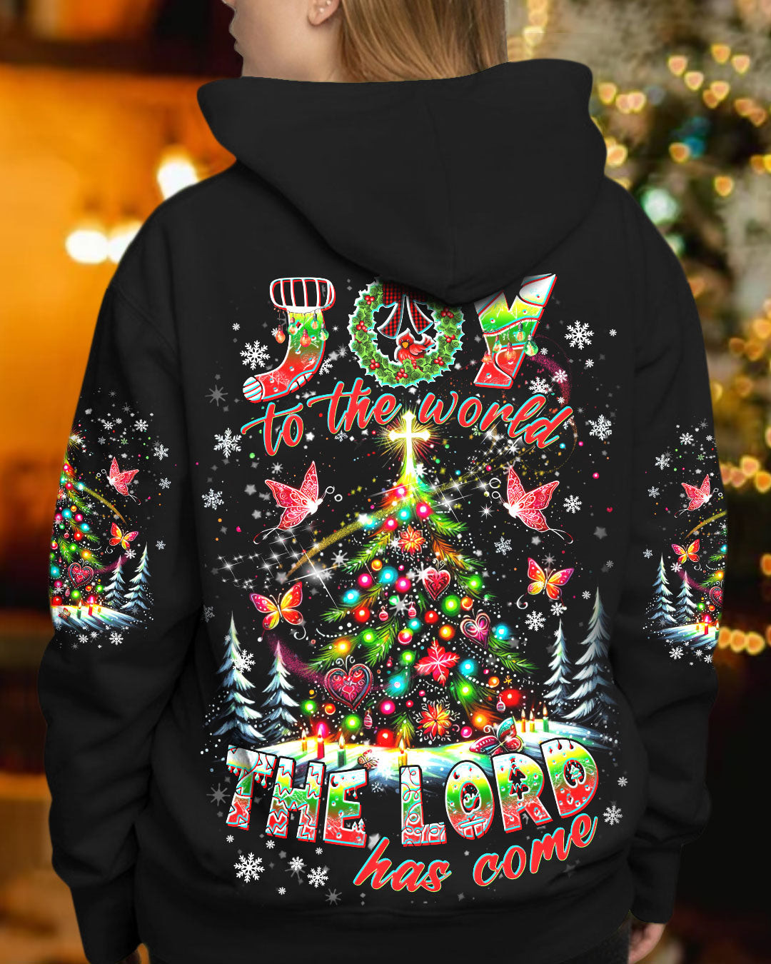 Rushgleam Christmas Tree Joy To The World Christmas Hoodie Xmas Holiday Apparel Jesus Gift Ideas