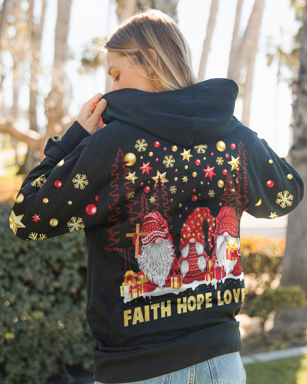 Rushgleam Gnome Faith Hope Love Christmas Hoodie Cozy Faithful Pullover Gnome Related Gifts