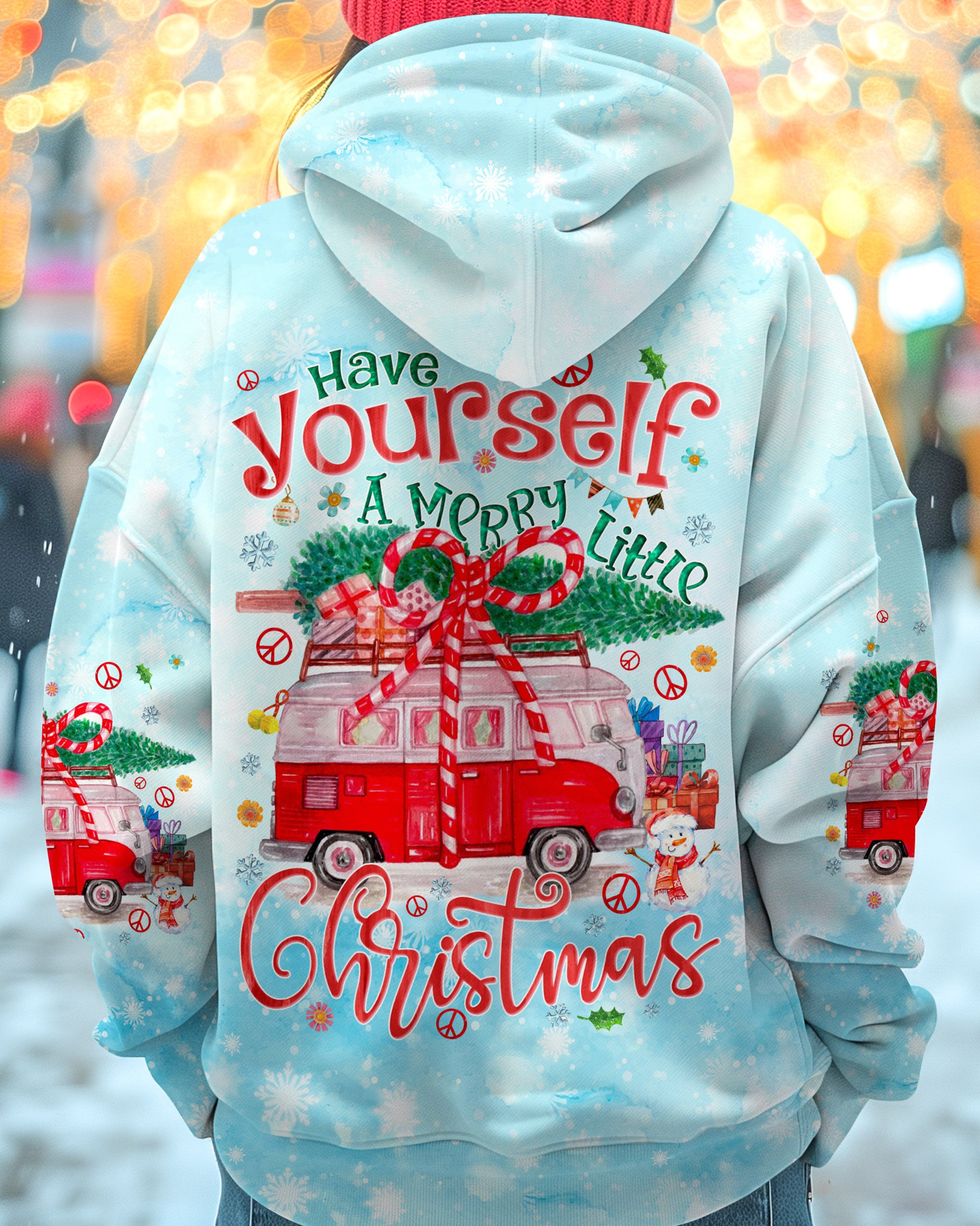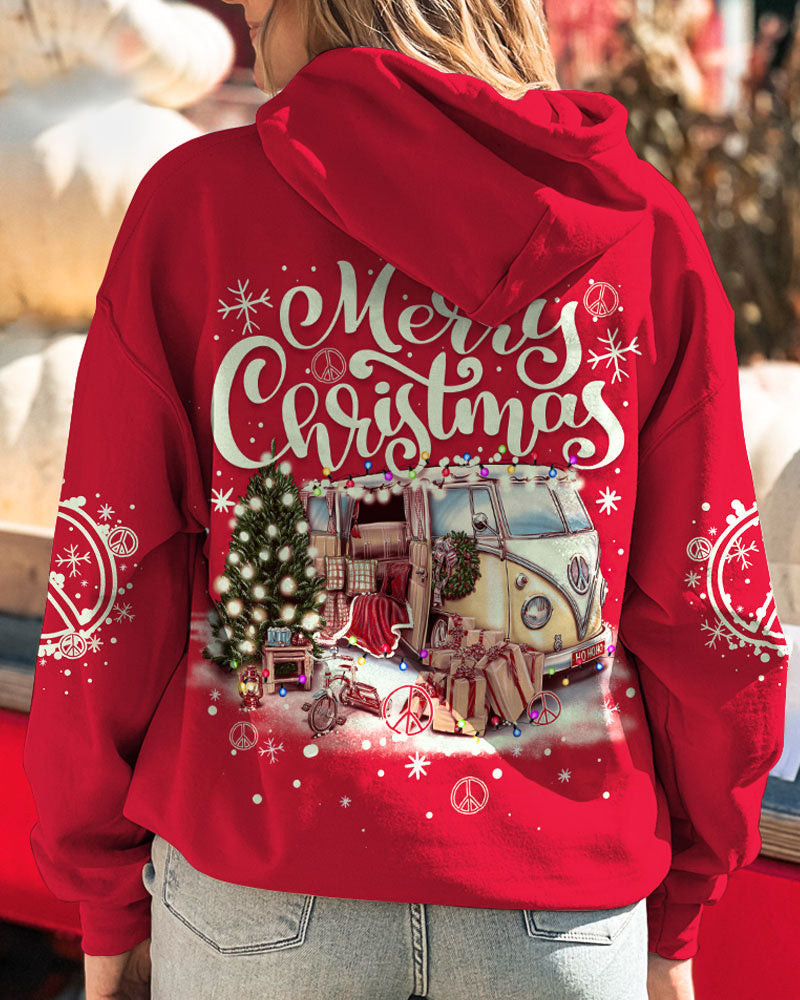 Rushgleam Hippie Van A Merry Little Christmas Hoodie Peaceful Symbol Xmas Clothing Gifts For Him