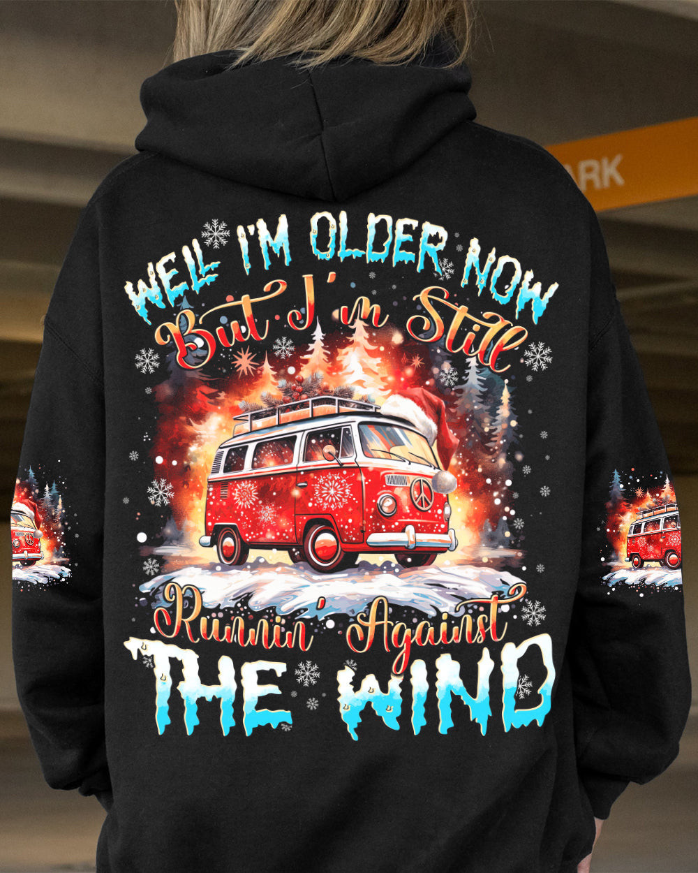 Rushgleam Hippie Van Running Against The Wind Christmas Hoodie Cozy Xmas Clothing Freedom Gifts