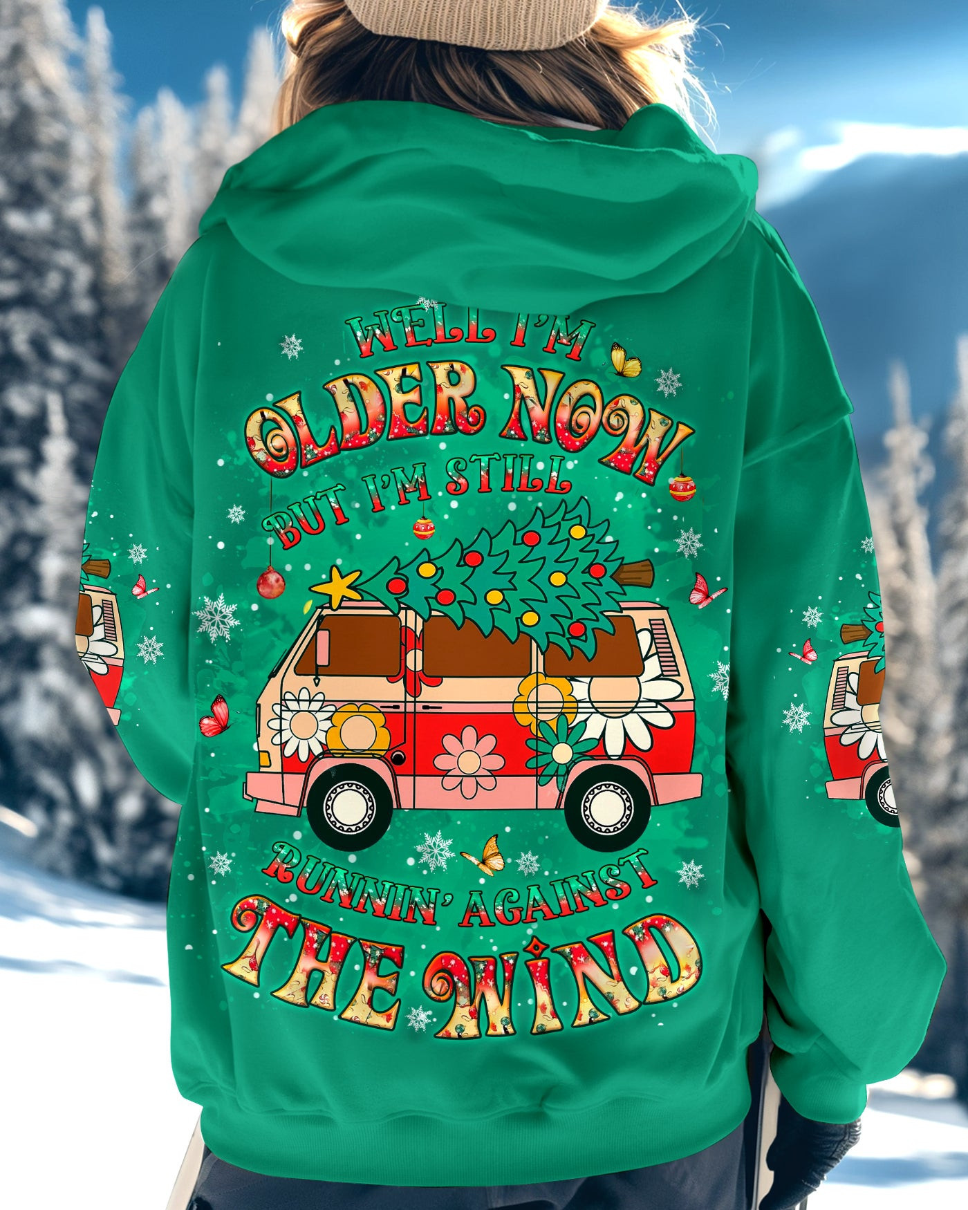 Rushgleam Hippie Van Running Against The Wind Christmas Hoodie Xmas Clothing Freedom Gifts For Her