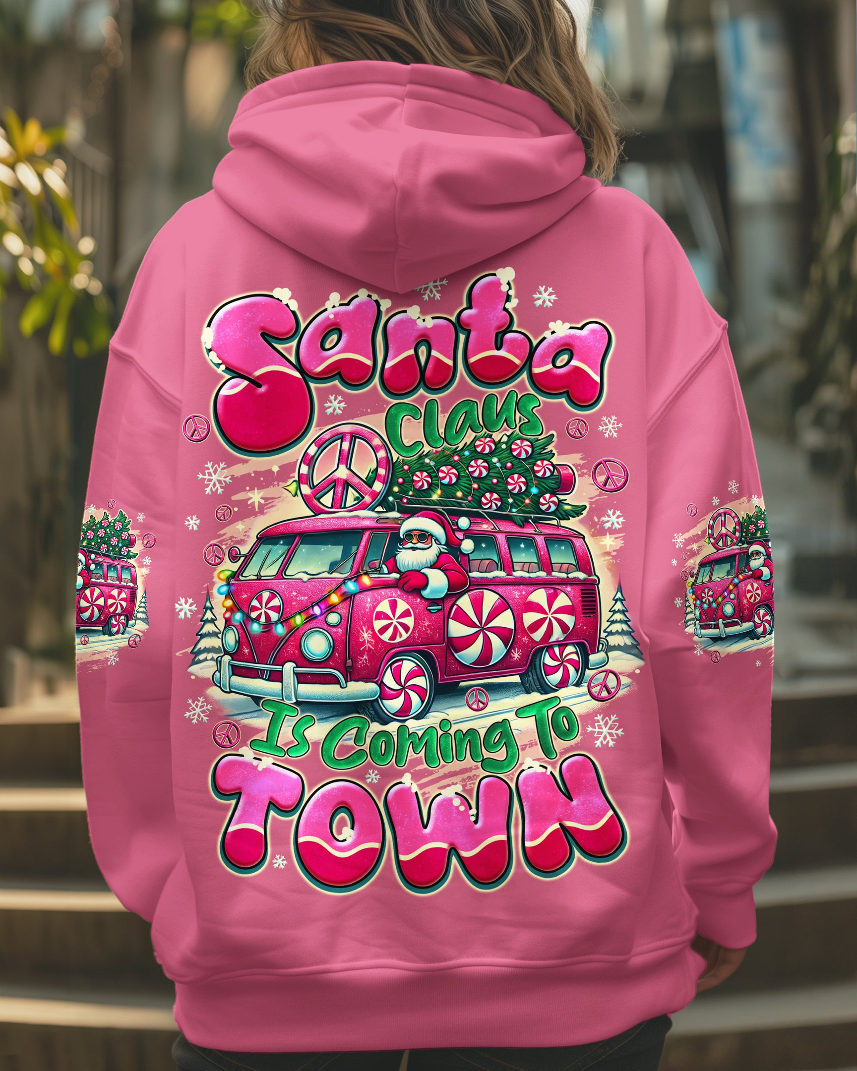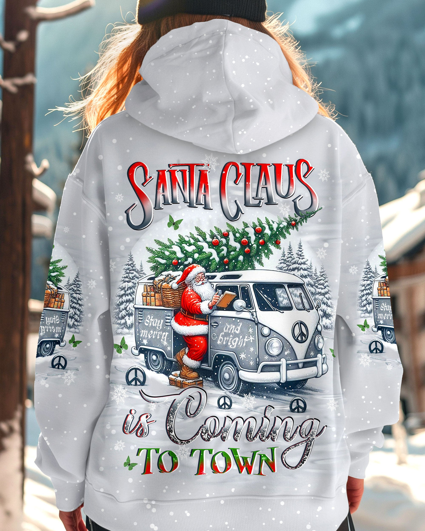 Rushgleam Hippie Van Santa Claus Is Coming Christmas Hoodie Cozy Xmas Apparel Peace Related Gifts