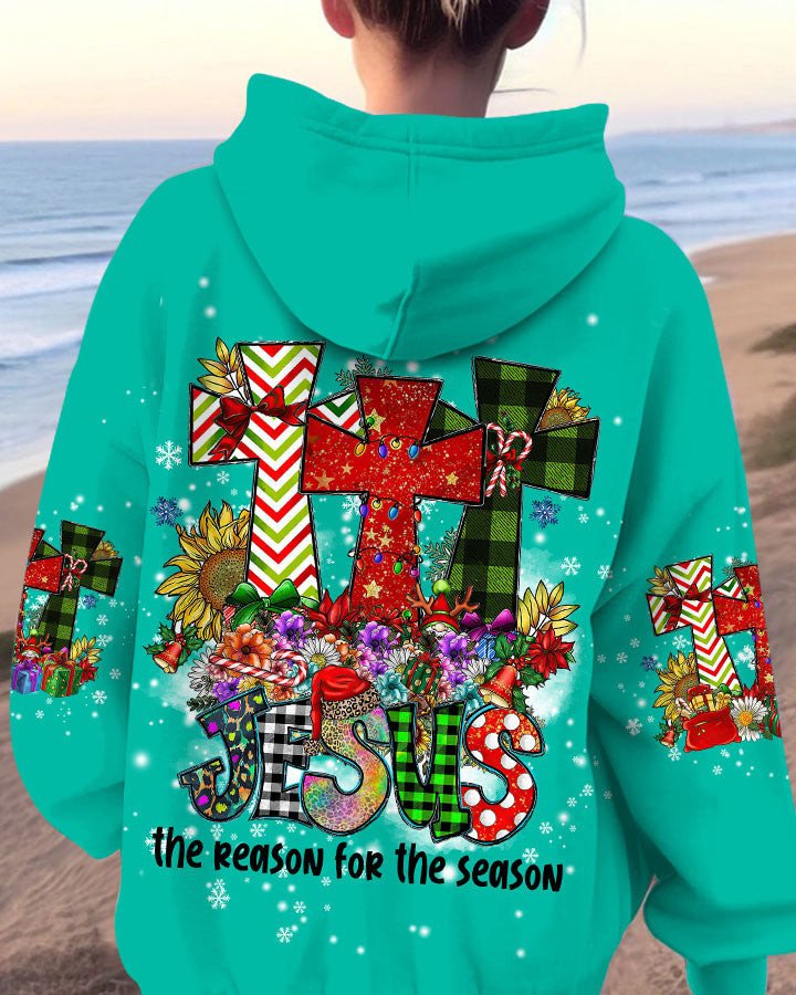 Rushgleam Jesus Is The Reason Christmas Hoodie Cozy Winter Apparel Xmas Christian Gifts For Mom