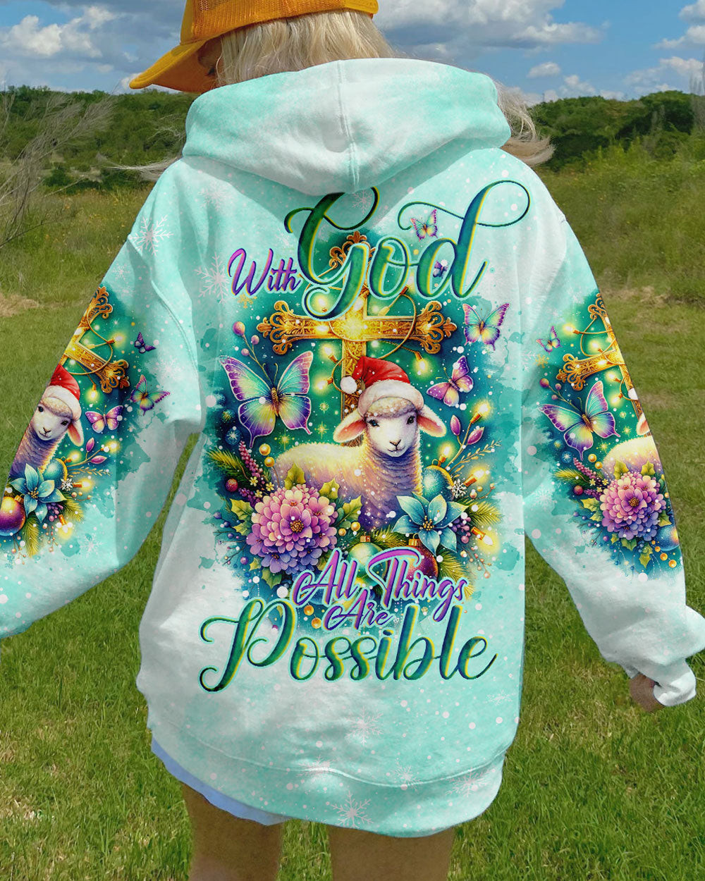 Rushgleam Lamb All Things Are Possible Christmas Hoodie Best Christian Faith Clothing Lamb Gifts