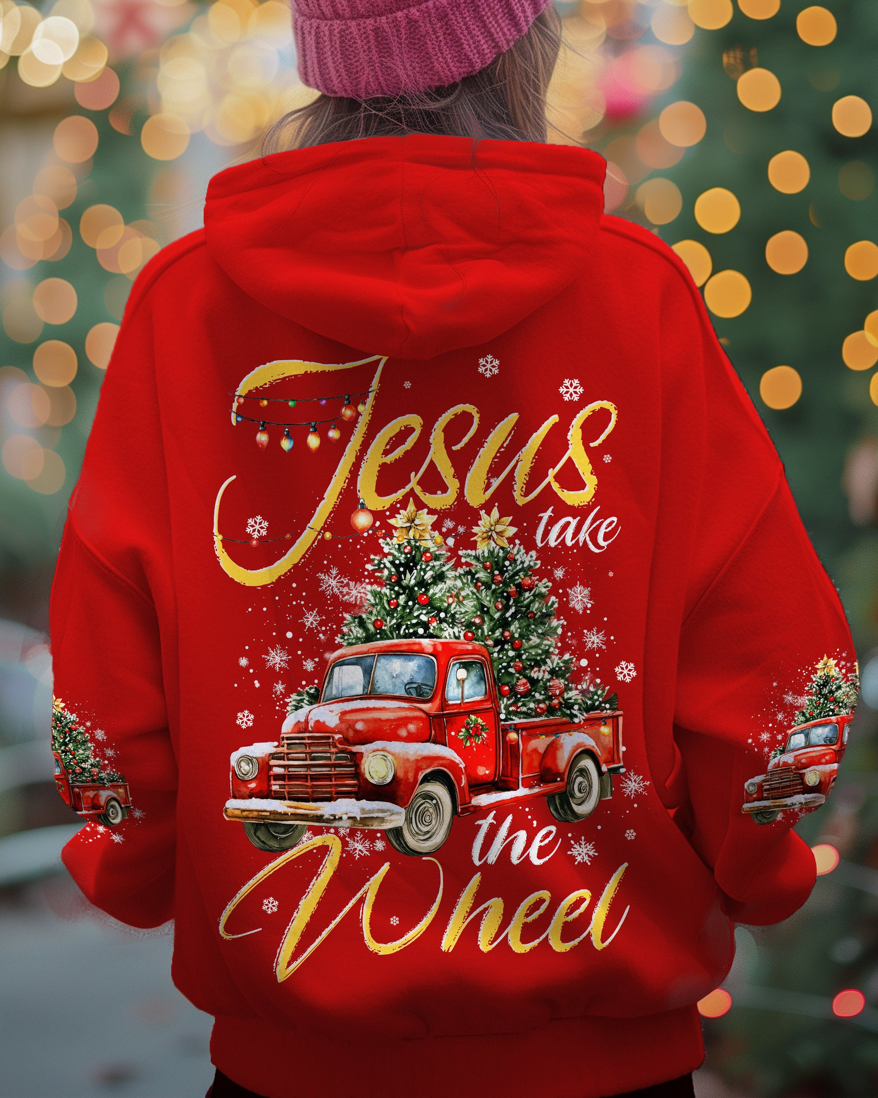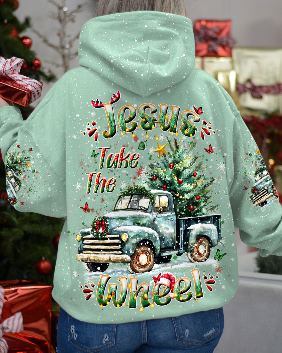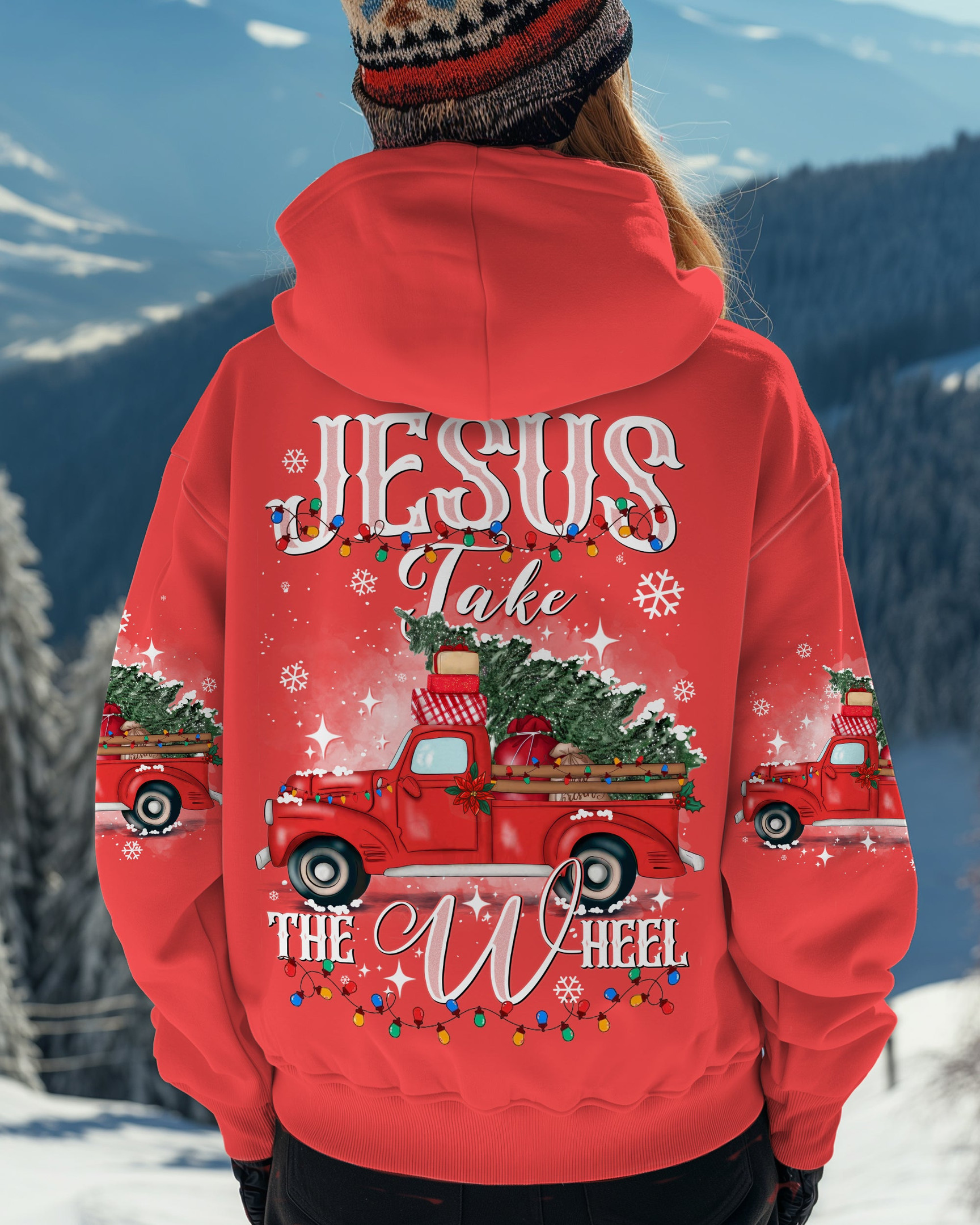 Rushgleam Truck Jesus Take The Wheel Christmas Hoodie Cool Winter Apparel Great Jesus Gifts For Him
