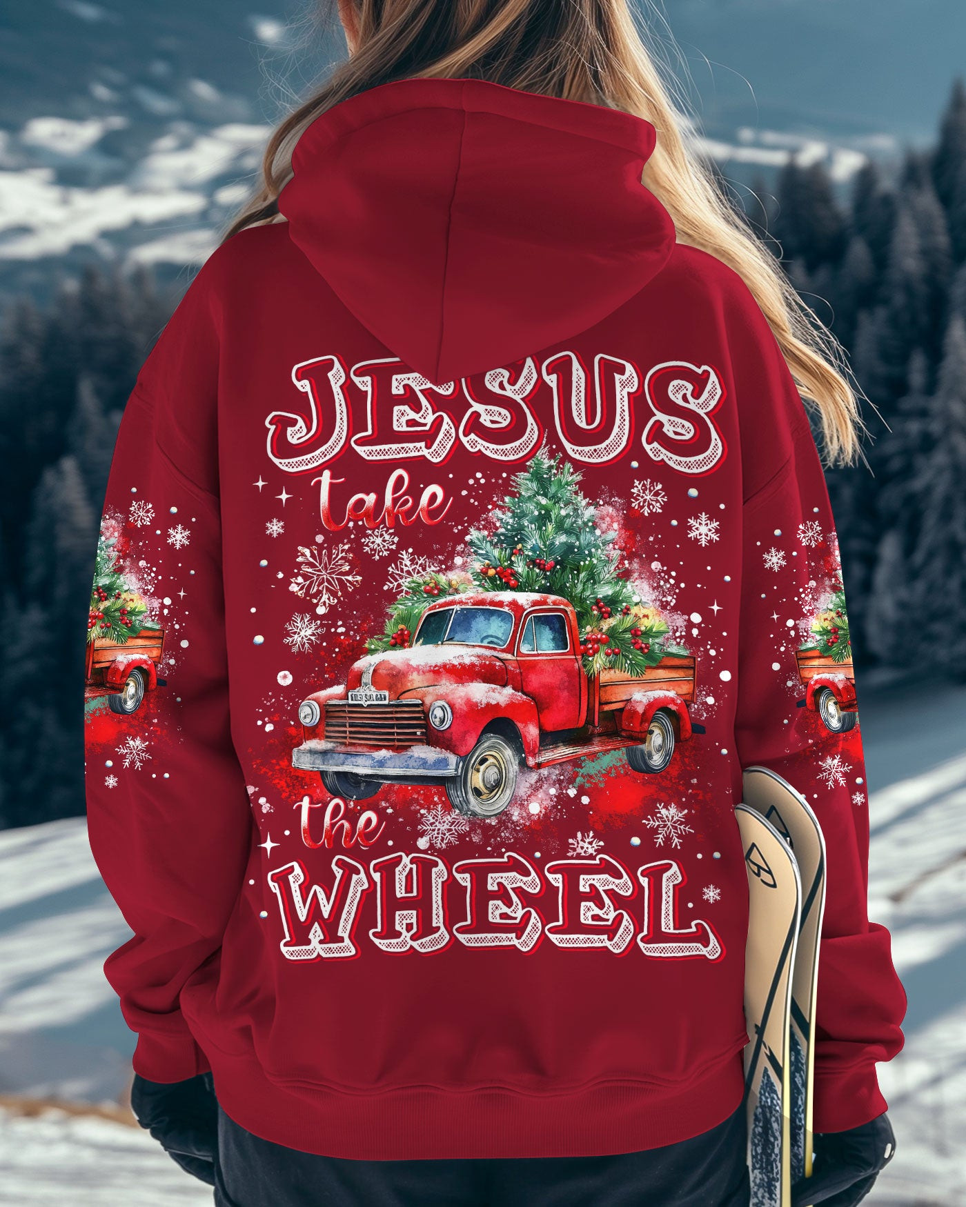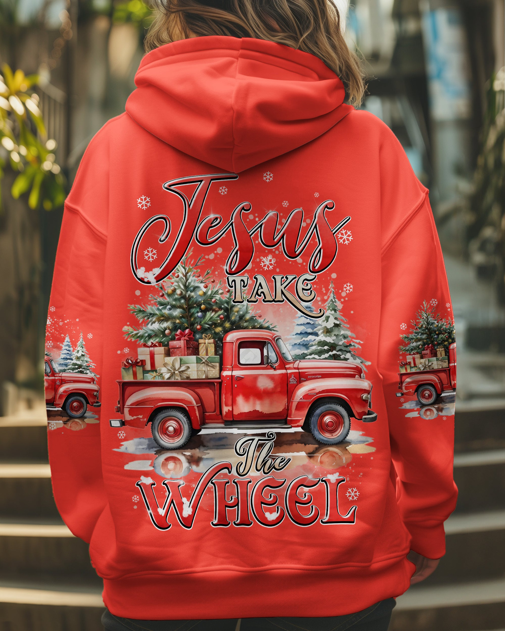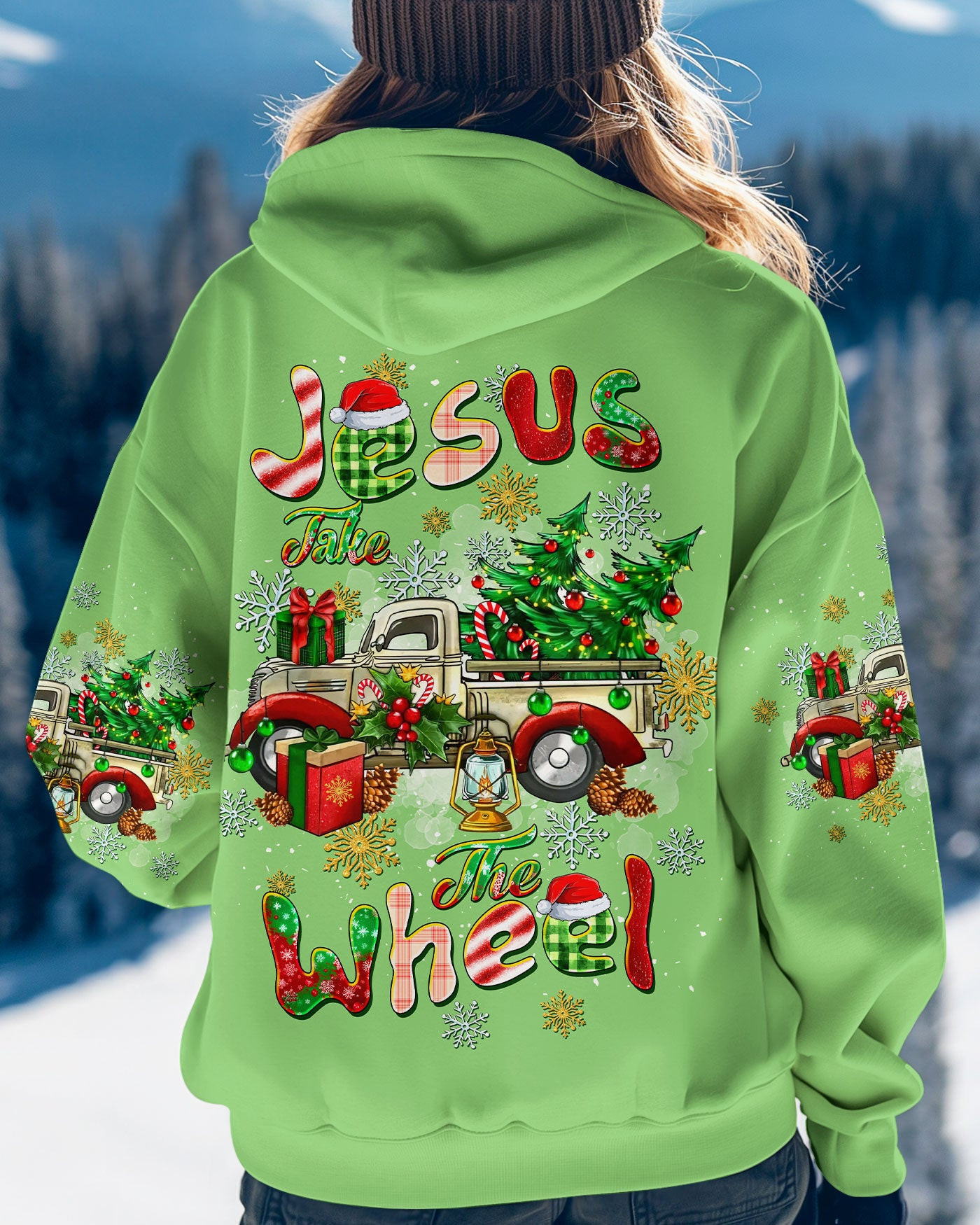 Rushgleam Truck Jesus Take The Wheel Christmas Hoodie Cool Winter Apparel Great Jesus Gifts For Him