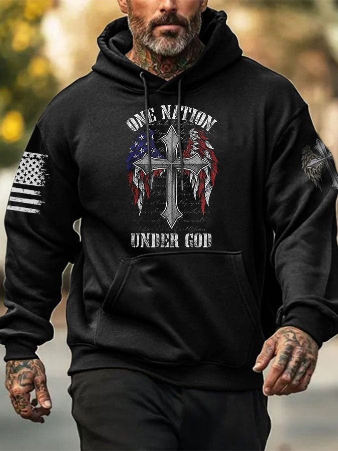 Rushgleam Veteran One Nation Under God Hoodie Christian Cross American Flag Patriotic Gifts For Him