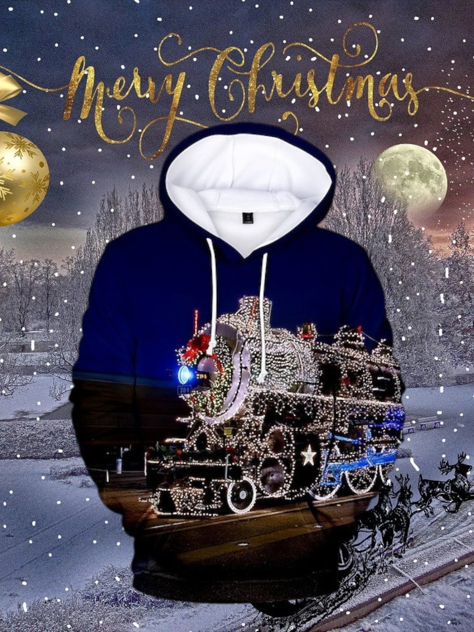 Train Lights Christmas Holiday Hoodie Locomotive Graphic Festive Christmas Gifts For Him