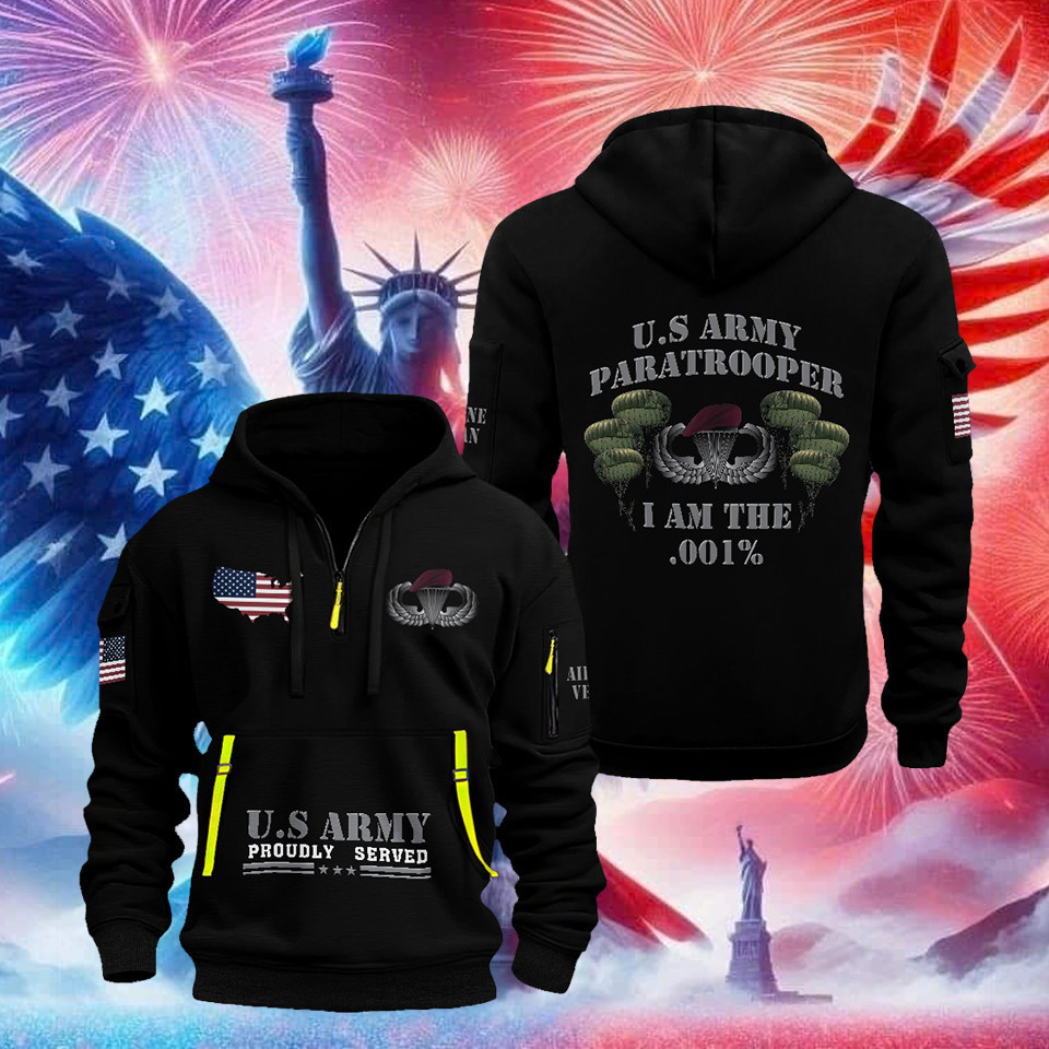 U.S Army Veteran Quarter Zip Hoodie Paratrooper I Am .001′ Veteran Apparel Patriotic Gifts