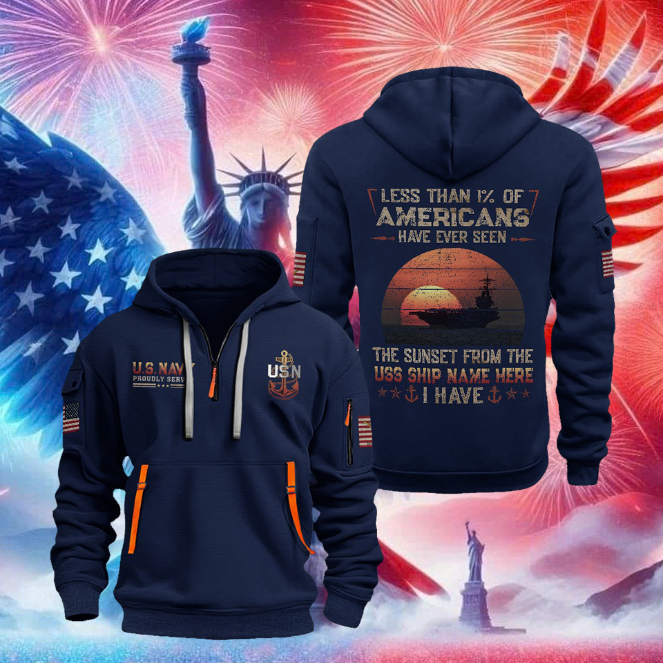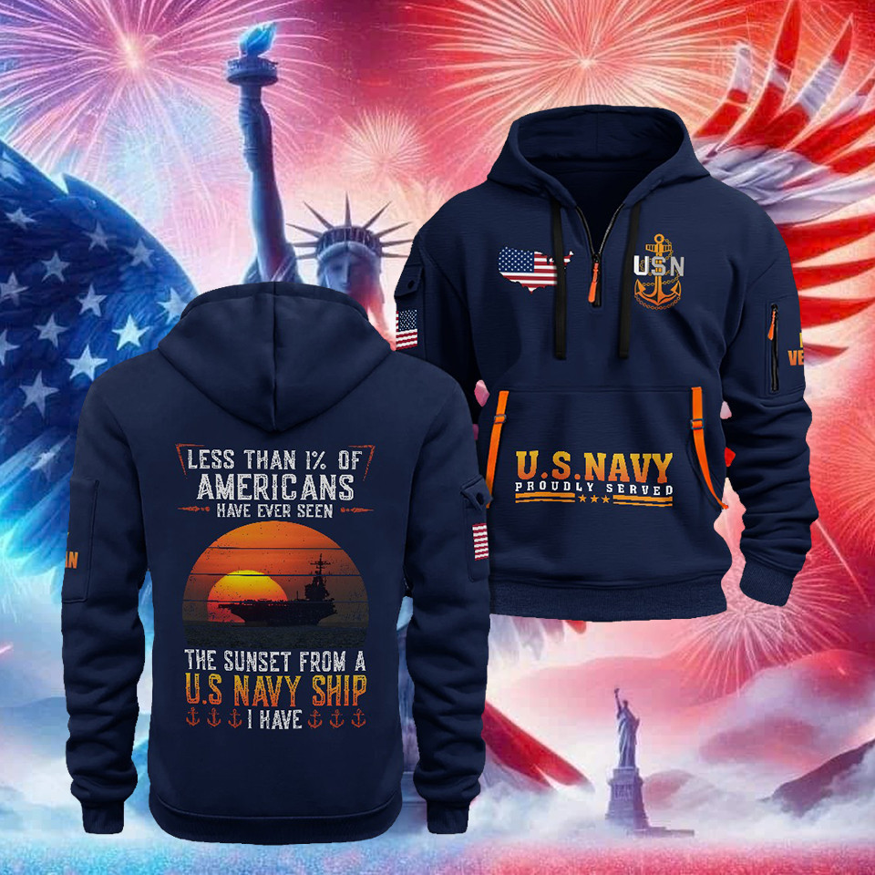 U.S. Navy Quarter Zip Hoodie Eagle USA Flag Less Than 1′ Of Americans Military Outfit Gifts