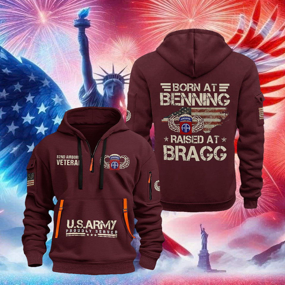 U.S.Army 82nd Airborne Veteran Quarter Zip Hoodie Born At Benning Clothing Veteran Gifts