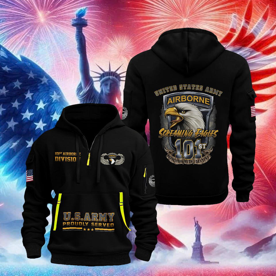 U.S.Army Veteran Quarter Zip Hoodie 101st Airborne Division Sreaming Eagle Merch Gifts