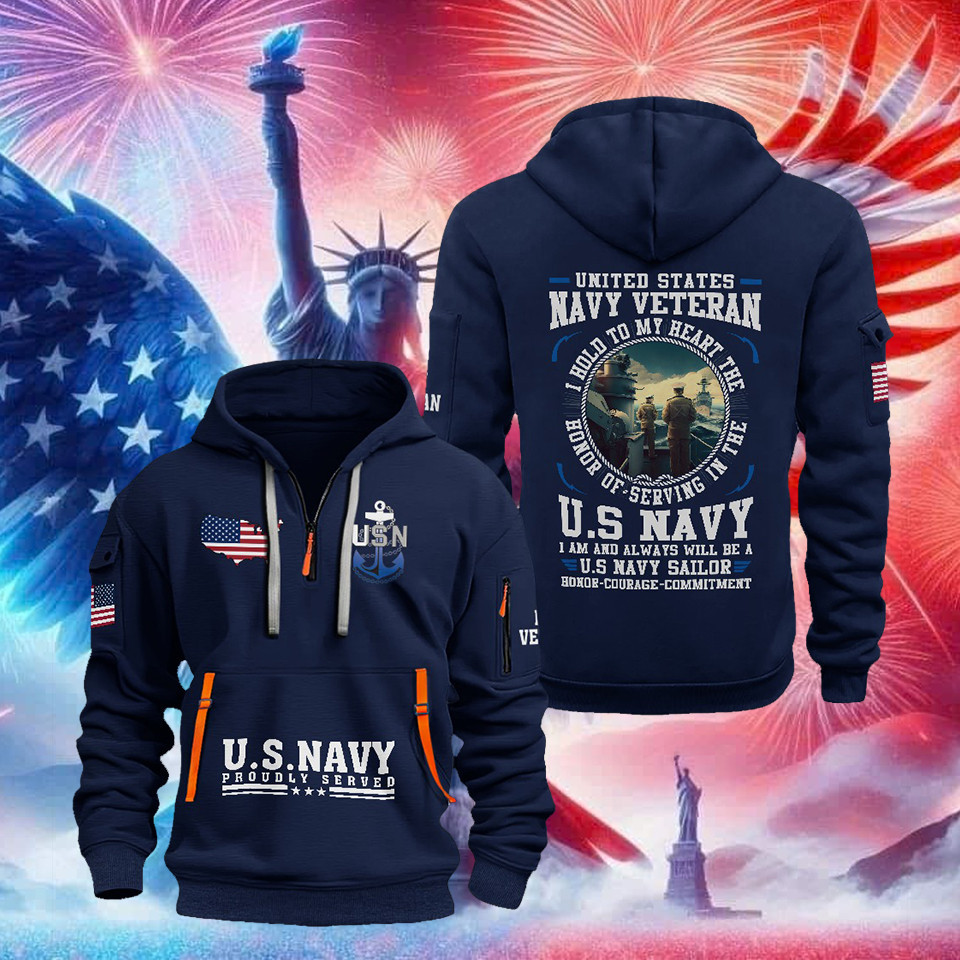 U.S.Navy Quarter Zip Hoodie Honor Courage Commitment Proudly Served Apparel Gifts For Men